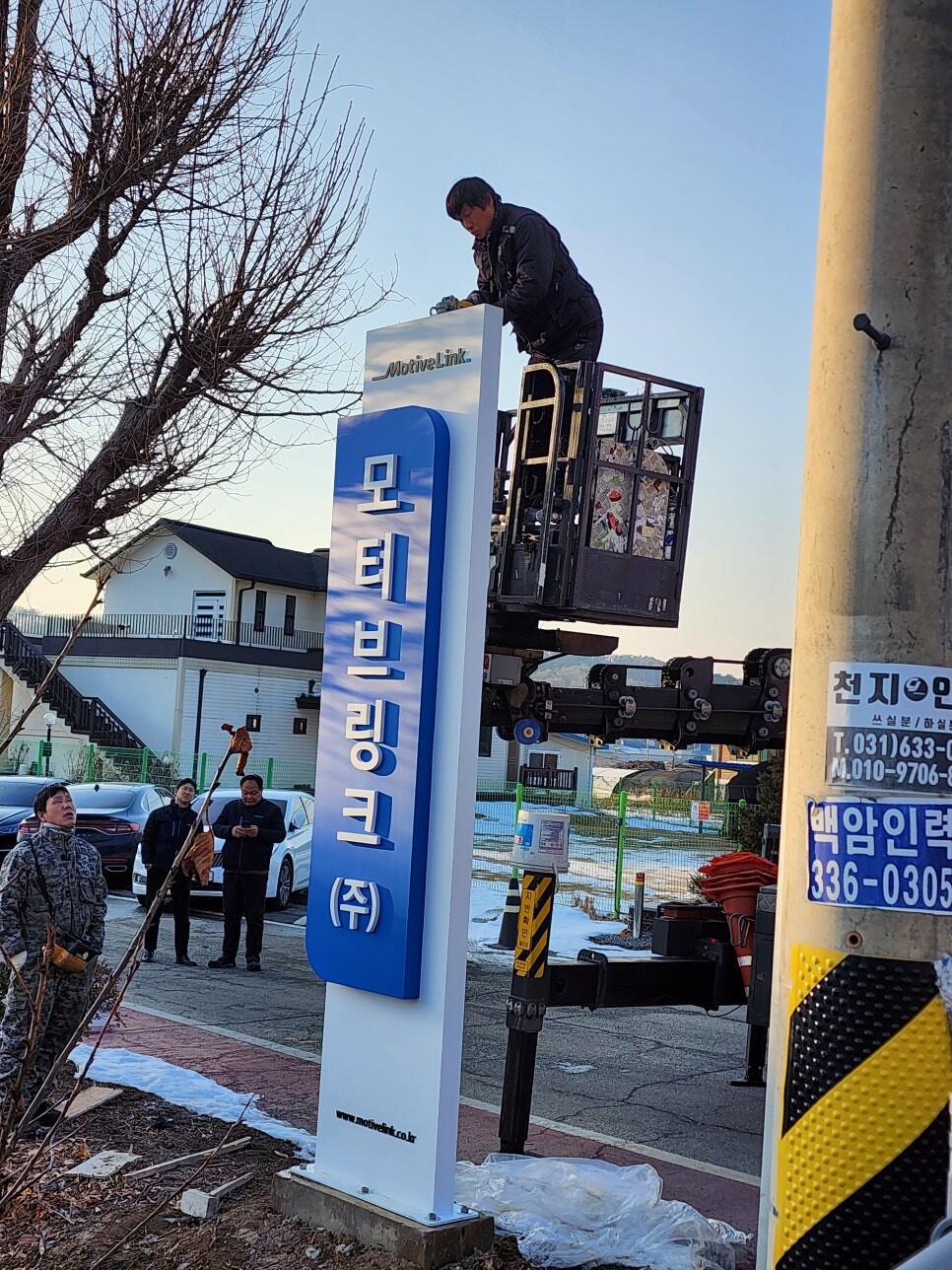용인에서 의뢰가 들어온 회사간판입니다. 입구에 지주간판과 led글자형채널간판 2군데와 실내에 회사연혁 광고물 의뢰주셨습니다.