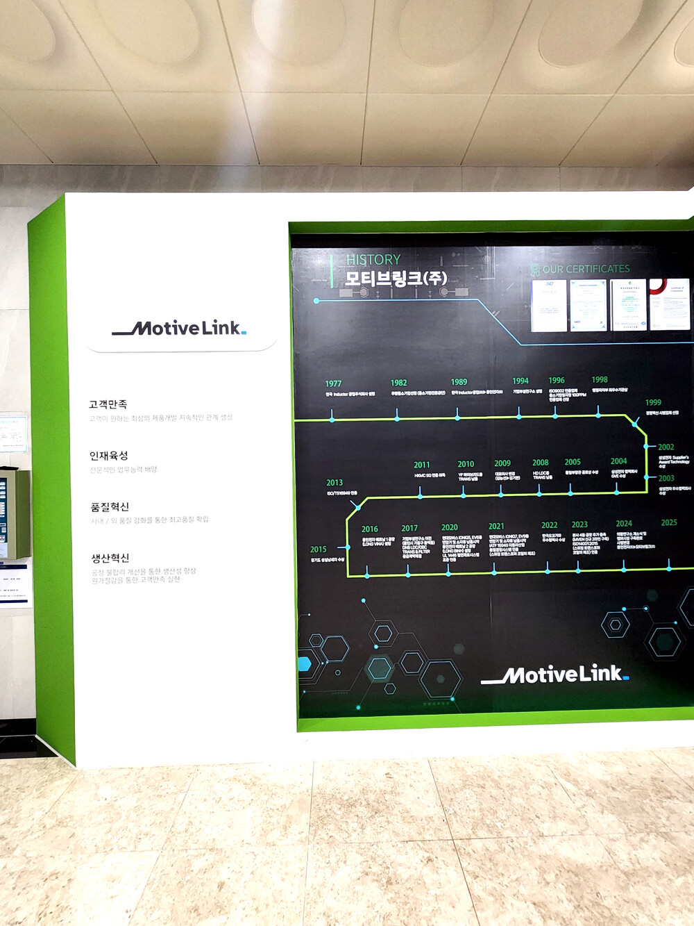 사무실 입구에 이렇게 연혁이 있으면 들어가기 전에 회사 이미지 향상에 도움이 많이 됩니다.