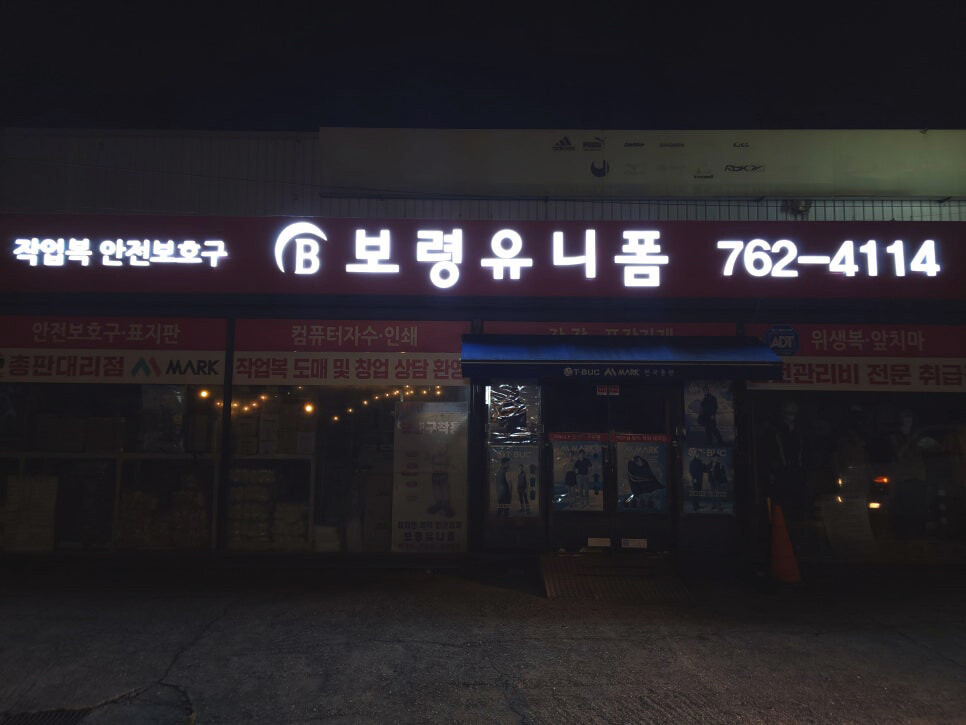 글자부분은 led채널로 만들어서 밤에는 글자부분에서 조명이 나오게 설계했습니다.