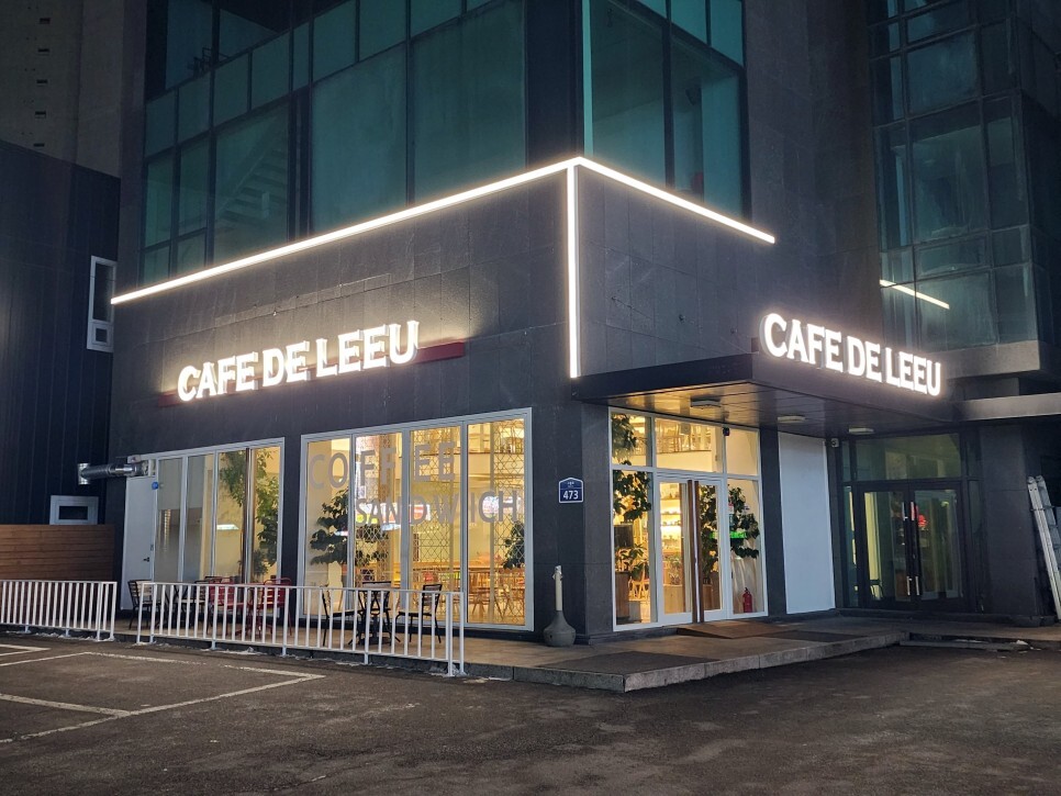 경기도 광주 삼동에서 주문이 들어온 카페간판입니다. 전면과 측면에 led채널바 형식에 간판을 달고 유리창에는 간단한 시트지를 작업했습니다.