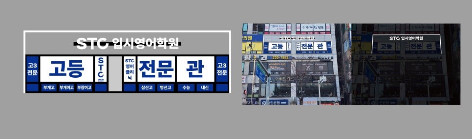 요새는 학원에서도 라인조명을 많이들 사용하십니다. 테두리에 ㄷ자로 라인조명을 설치하고 메인간판은 led채널형간판입니다. 시안은 여러가지를 보여드렸는데 단순한 스타일을 좋아하셔서 단순하게 디자인했습니다.