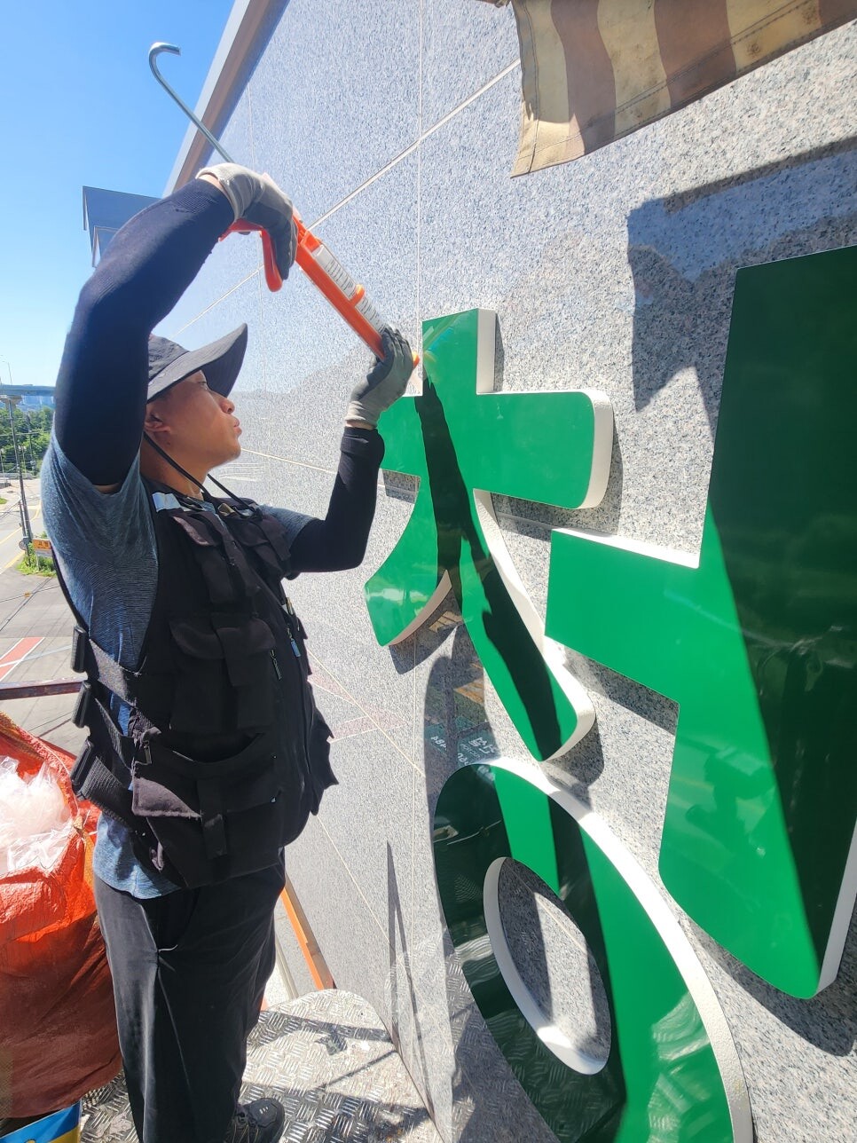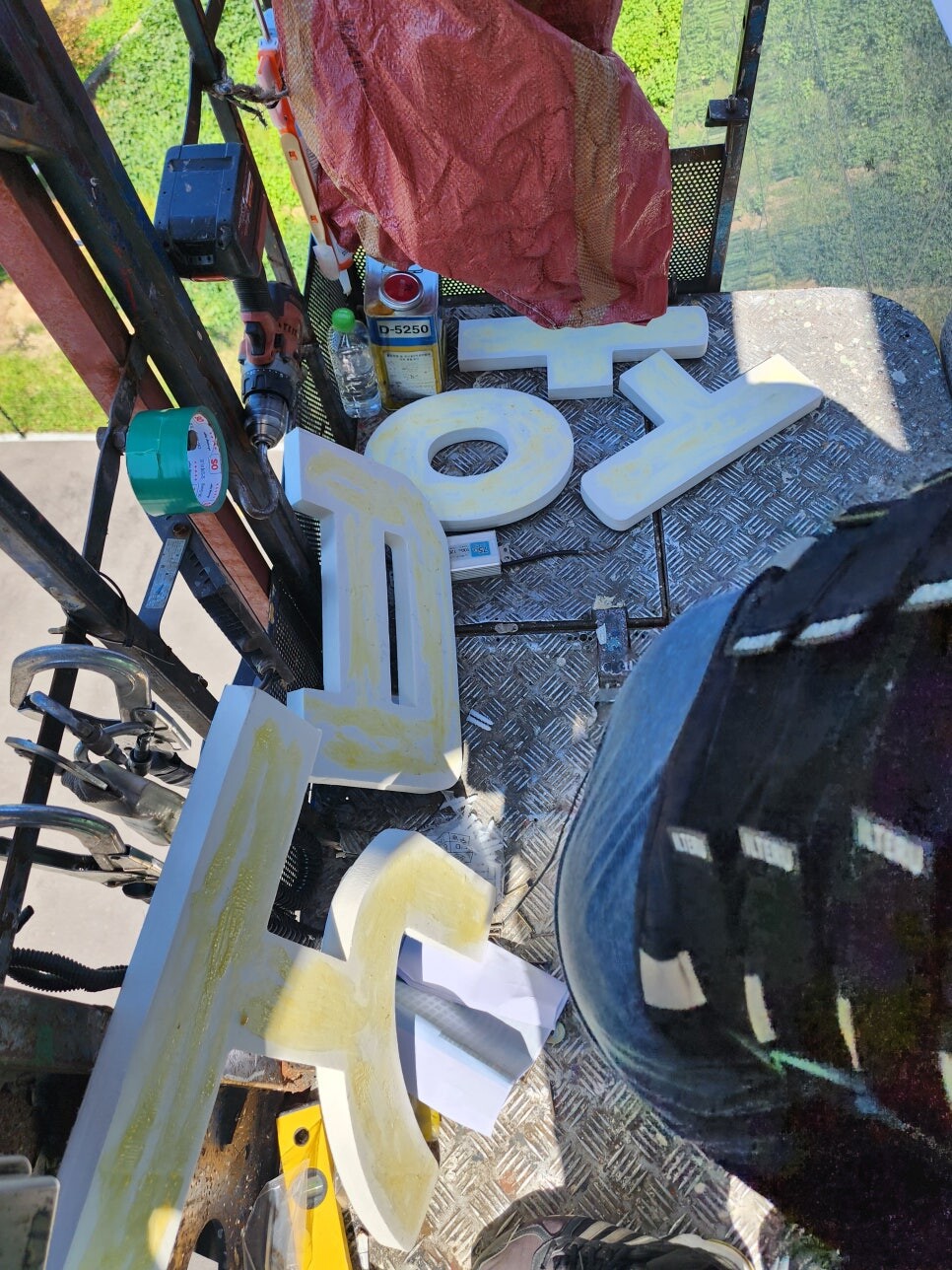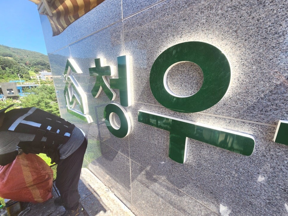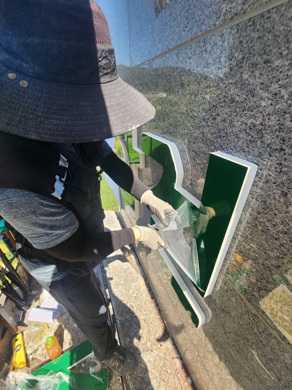 용인시 처인구에서 의뢰가 들어은 고무스카시간판으로 글자형으로 부착하는 방식입니다.