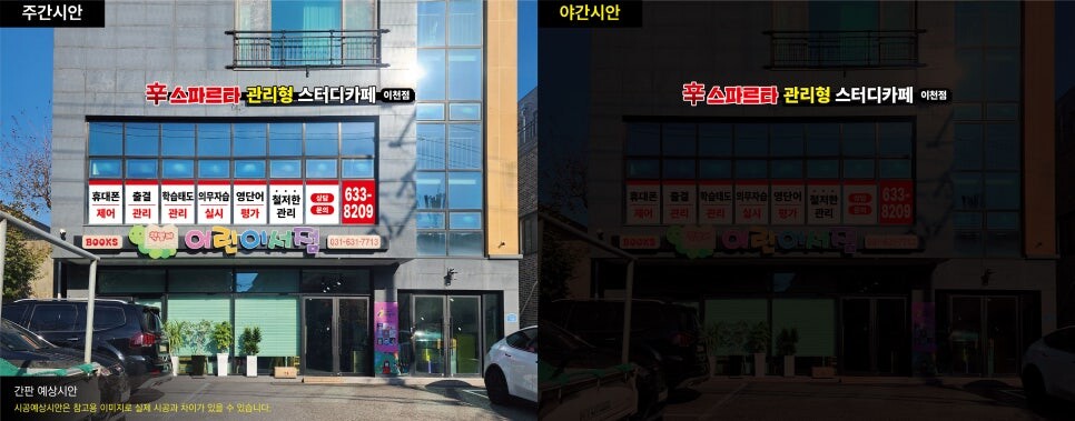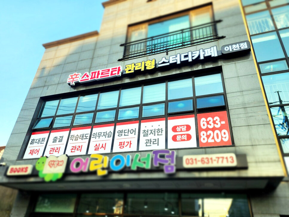 이천에서 주문이 들어온 스터디카페간판입니다. 전에 동탄에서 학원간판을 달아드렸는데 이번에 3번째 시공입니다.