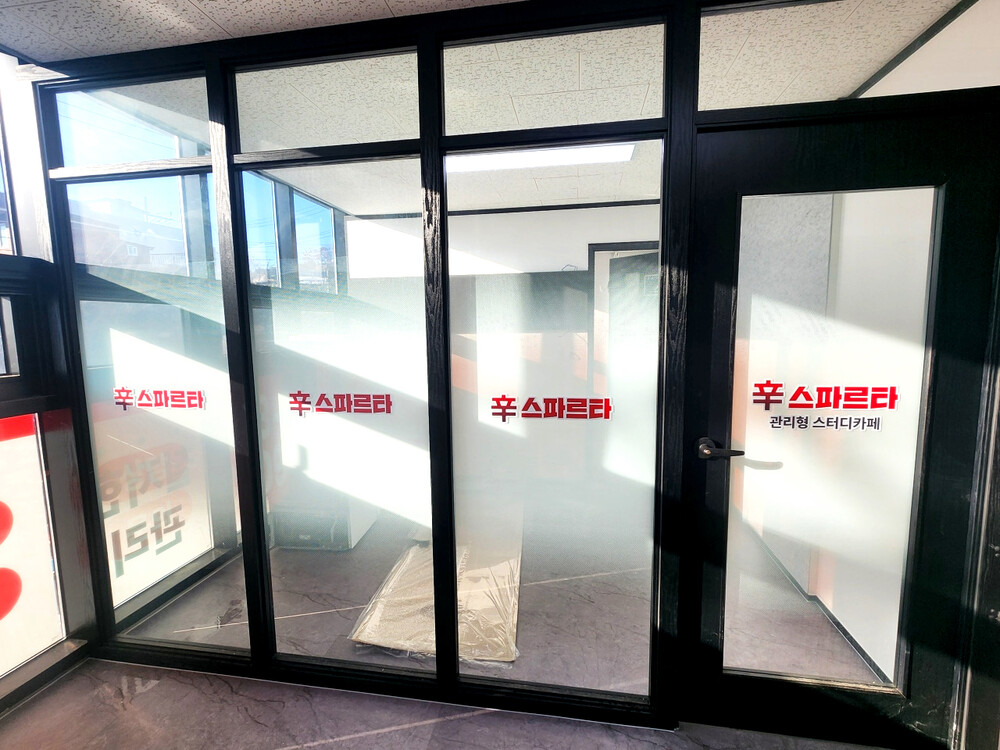 인테리어 공사중이라서 아직 필름부분청소가 안되어있네요. 일단 이미지월 부분에 글자는 아크릴스카시로 붙여드렸습니다.