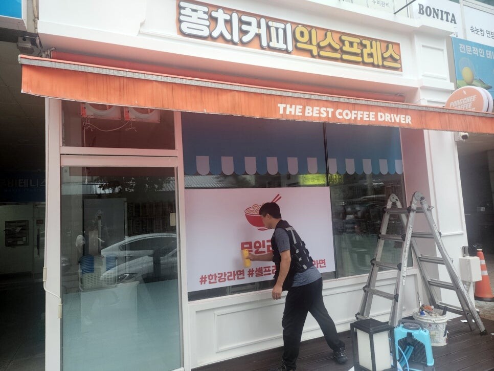 사이드돌출간판은 전에 붙어있던 시트지제거하고 시트지 다시 붙여드렸습니다.