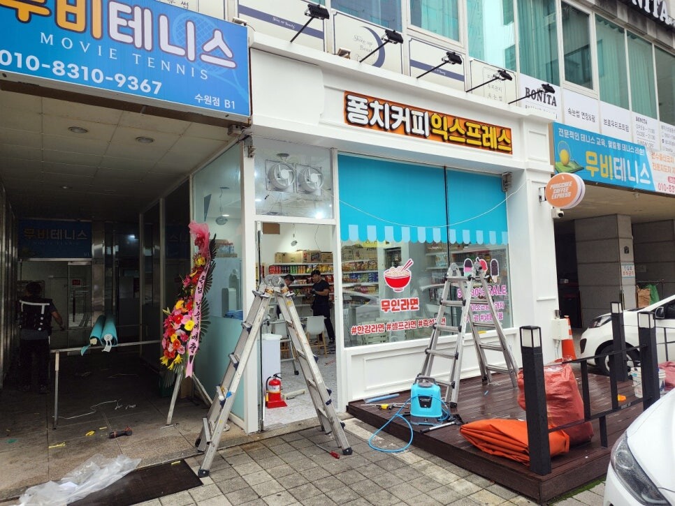 시공완료사진입니다. 안에서는 cctv 설치를 하고 있어서 선이 밖으로 나온게 보이네요.