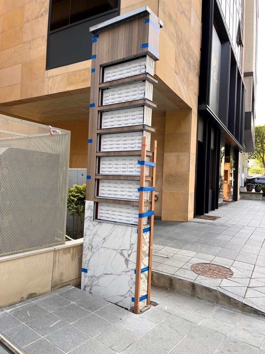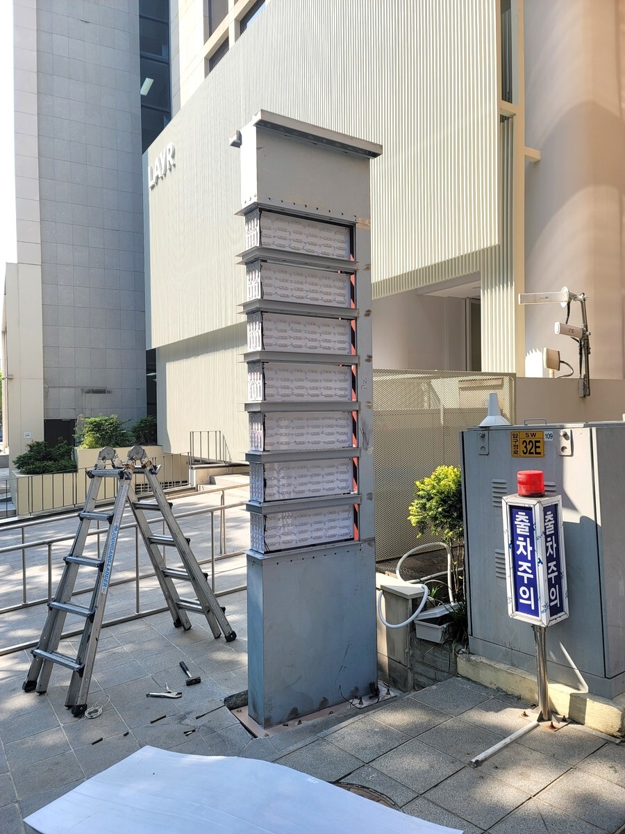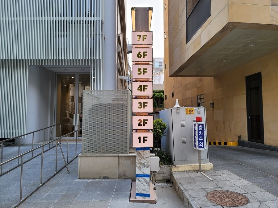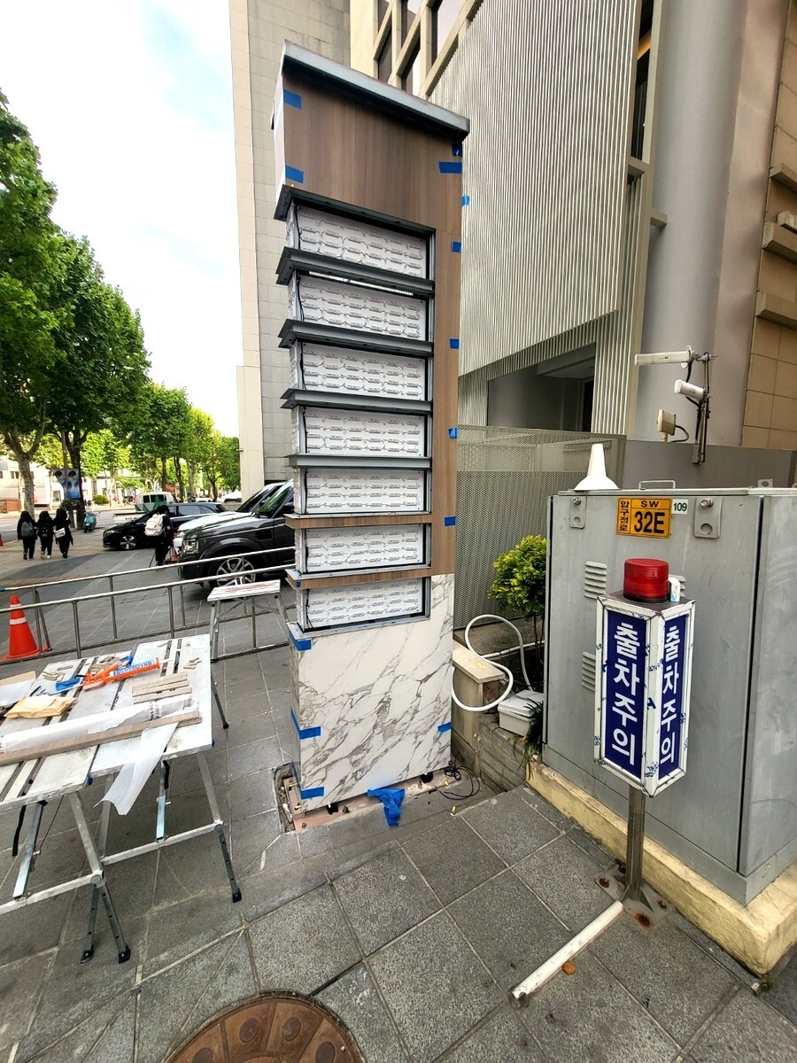 서울 청담동에서 의뢰가 들어온 특별한 지주간판입니다. 보통 간판외부에 타일이나 대리석으로 마감하는 방법은 거의 없는데 대리석이나 타일마감을 원하셔서 타일마감으로 간판을 만들어 드렸습니다.