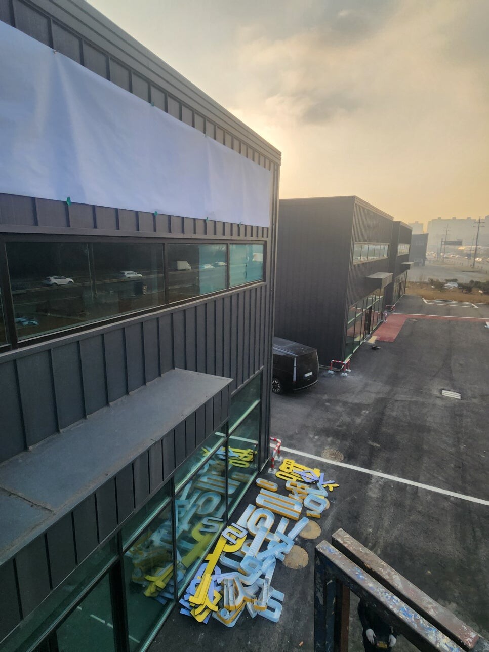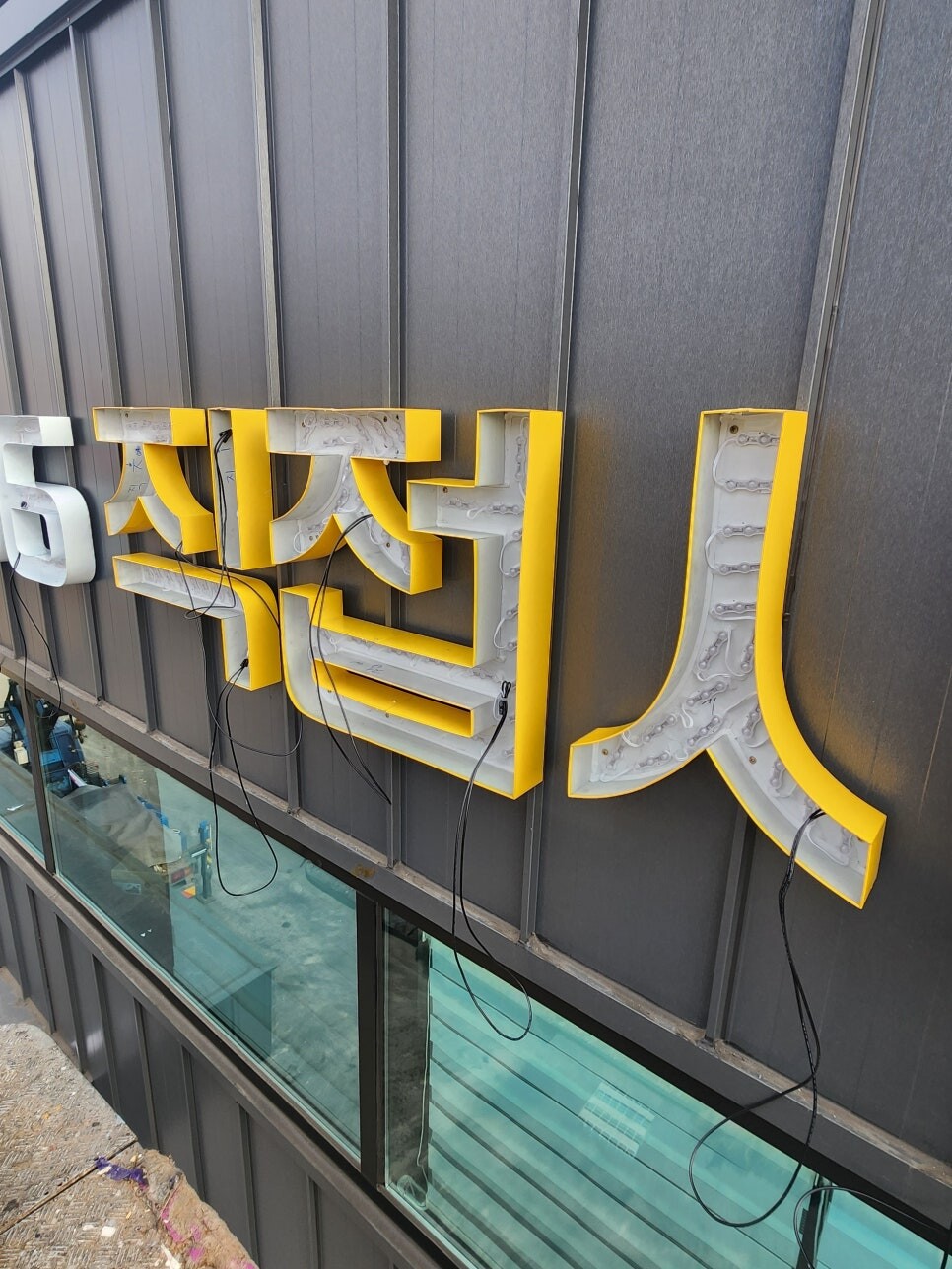 보통은 트러스바라고 막대바 위에 글자를 올리지만 트러스바도 보통 미터에 7만원 정도 나오기 때문에 비용절감 차원에서 글자로만 조립해서 시공하기로 했습니다.