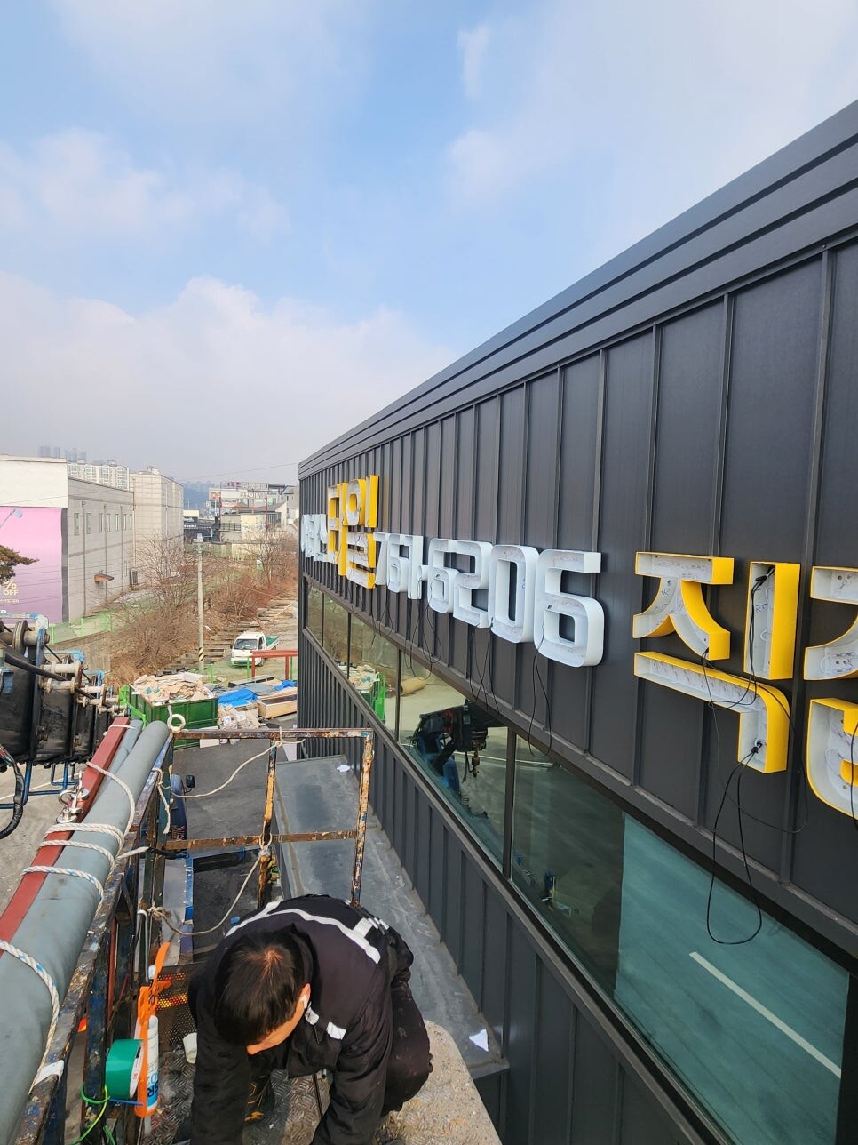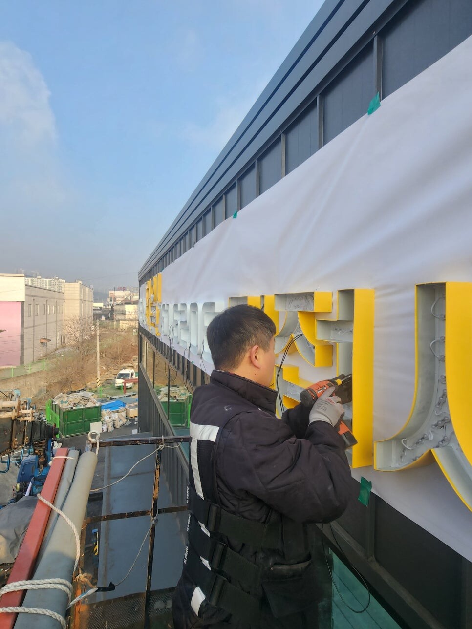 하루종일하면 여유로운 작업이지만 4시간안에 간판조립을 해야 스카이장비차 비용을 20만원 절약할수 있습니다. 그래서 서둘러서 작업했습니다.