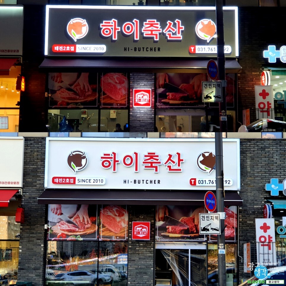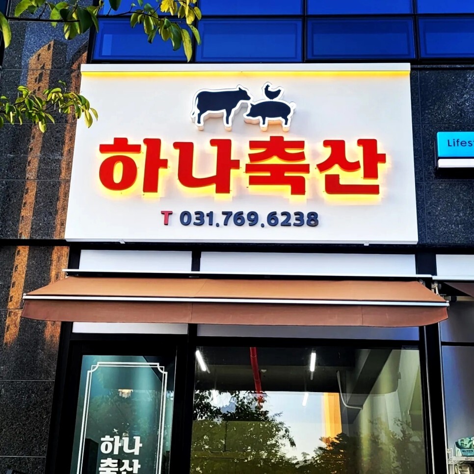 경기도광주에서 의뢰를 주신 하나축산 간판입니다. 하이축산 간판을 보시고 의뢰를 주셨는데 갈바형으로 된 고급진 간판을 해달라고 하셨습니다.