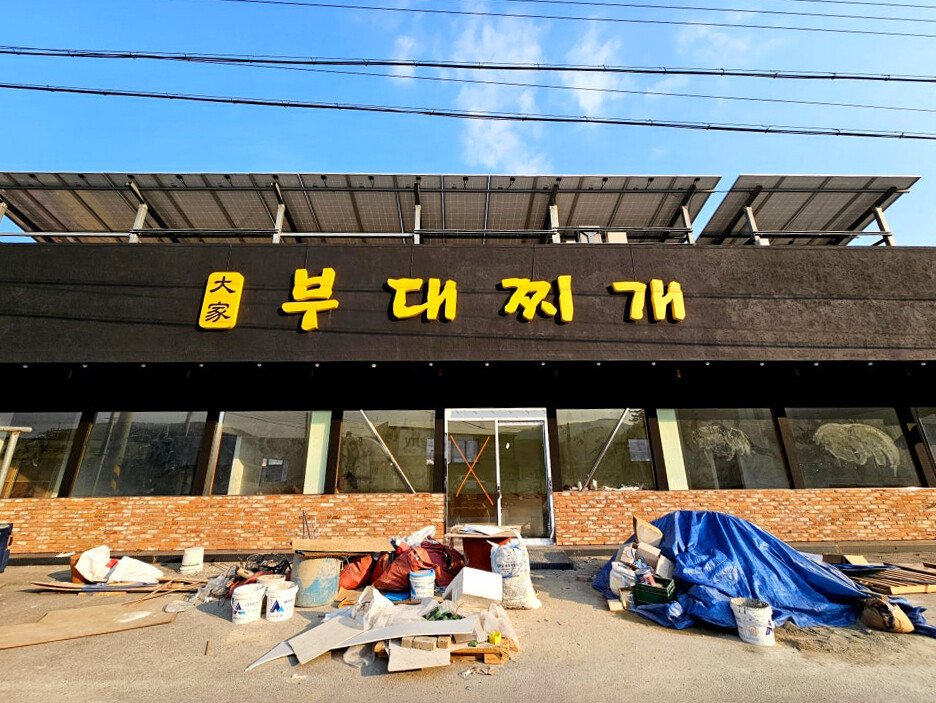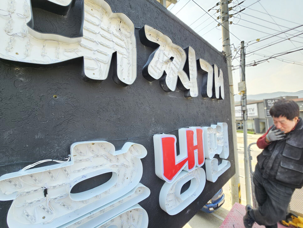 함흥냉면 부분은 갈바후광채널로 만들어사 밤에는 후광불빛이 나오게 만들었습니다.