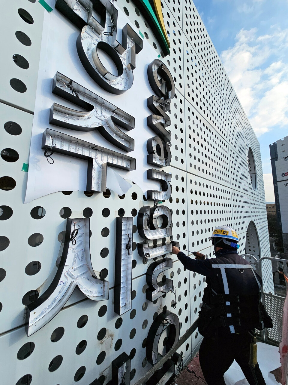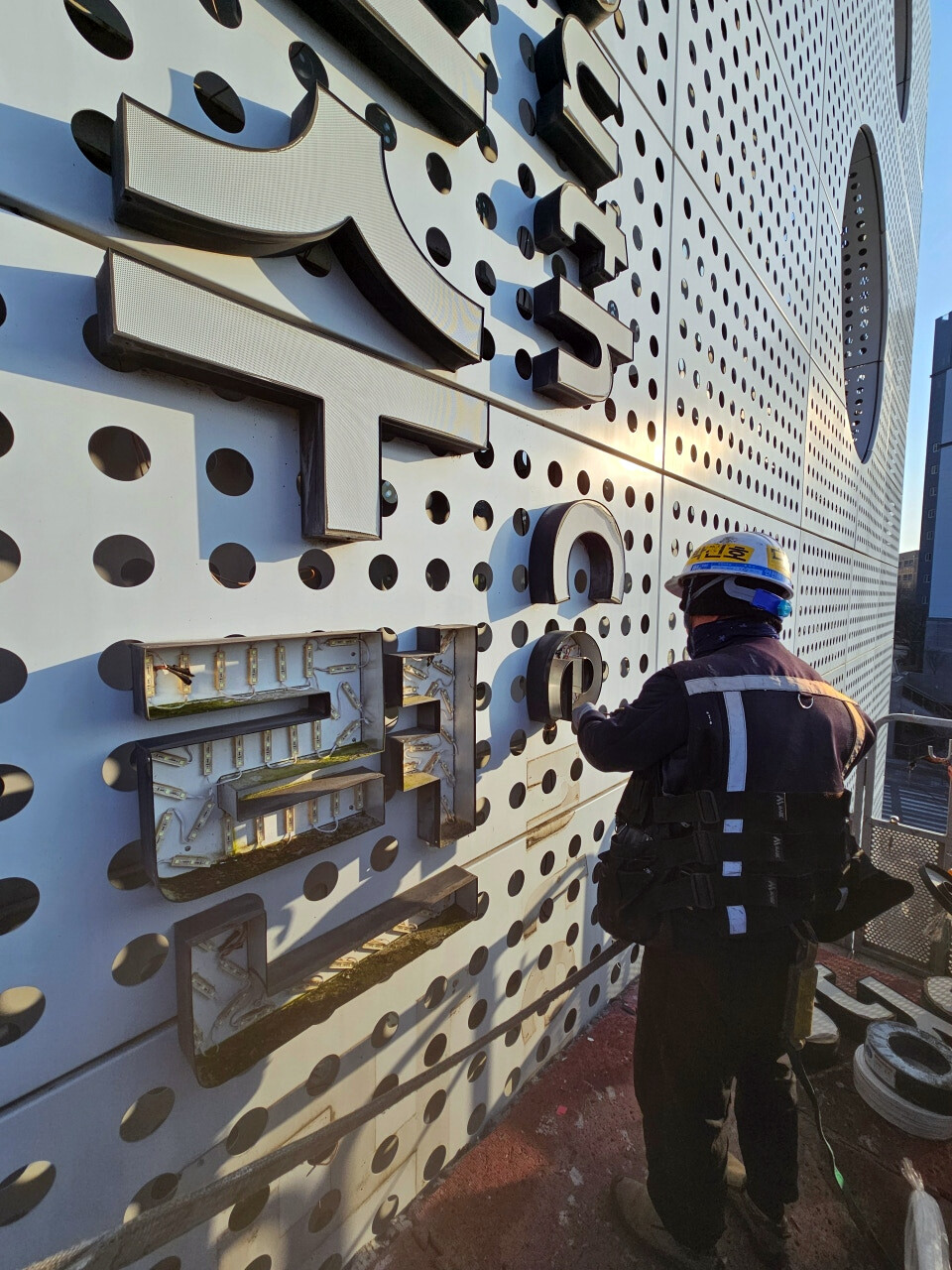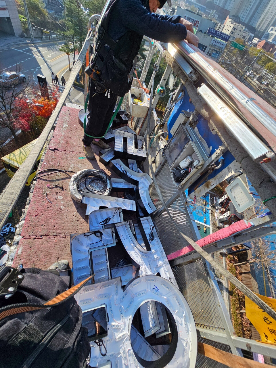 기존 간판글자를 철거합니다. 작업기간을 하루에 끝마칠거라서 빠르게 철거를 했습니다.