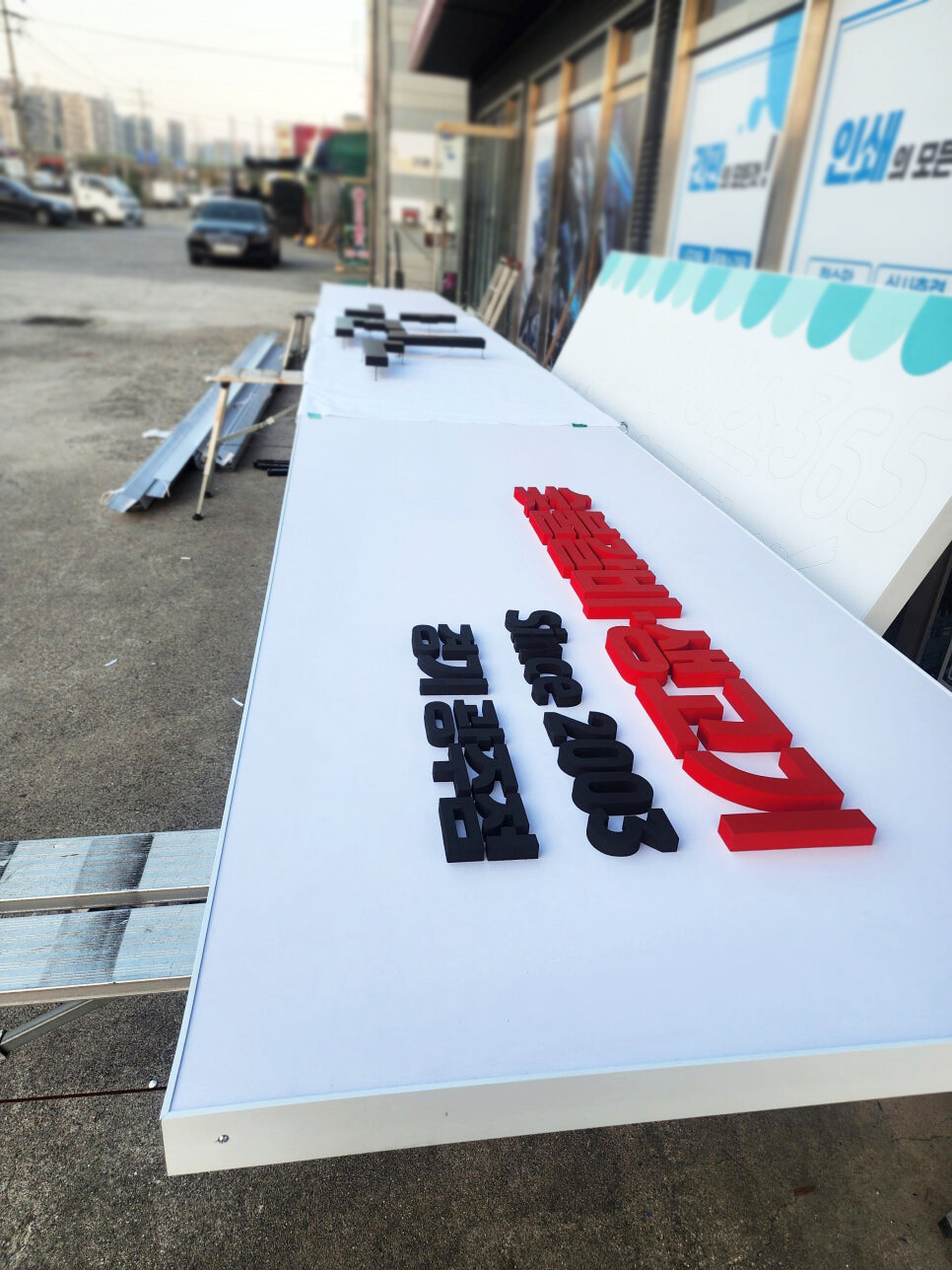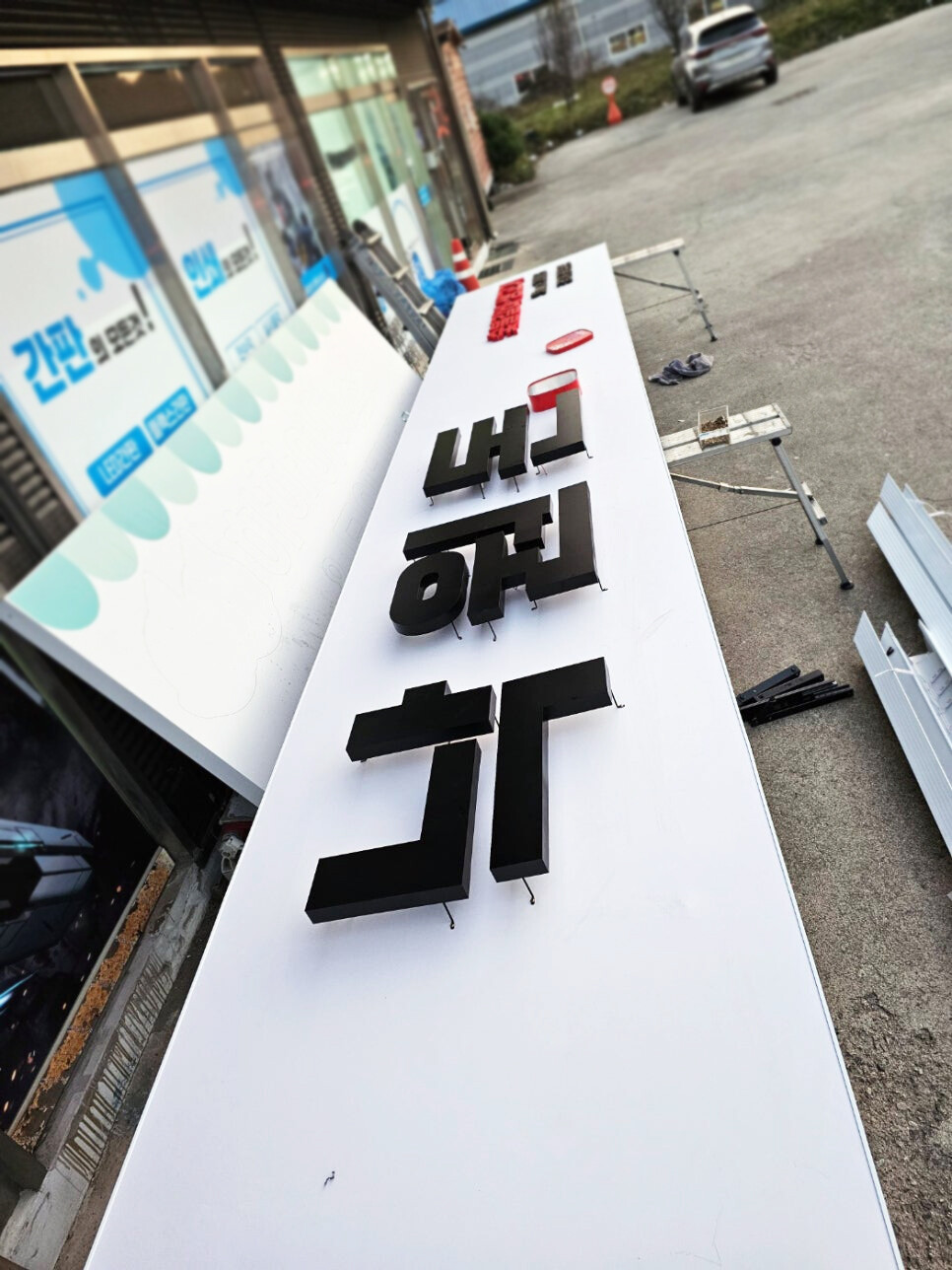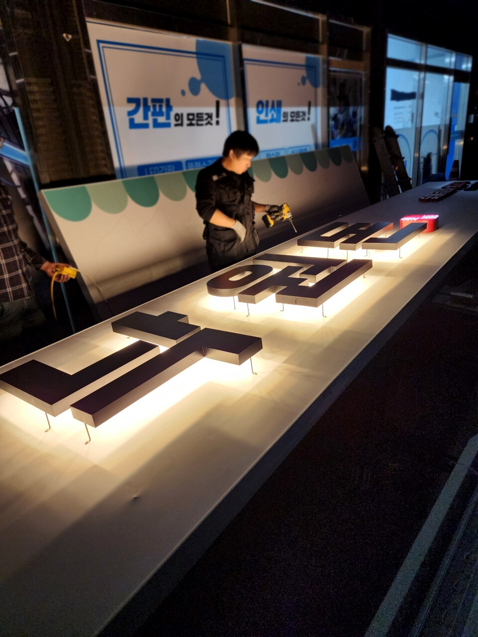 간판은 조립후에 조명테스트를 하고 부족한 부분이 있는지 검토합니다.