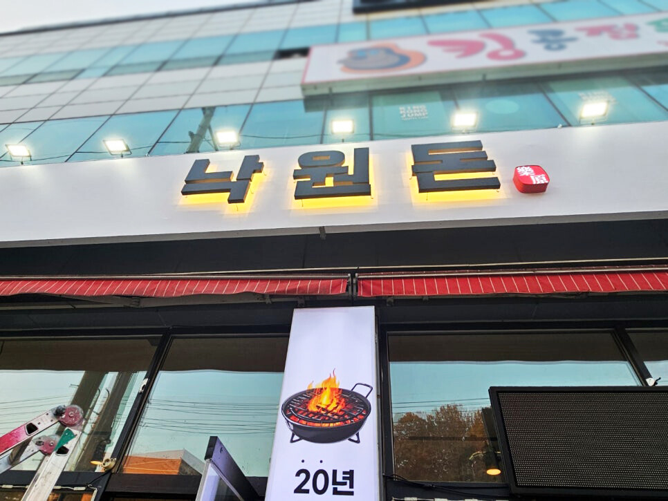 기존에 달려있던 투광기는 써먹고 기존에 있던 간판은 천갈이했습니다.