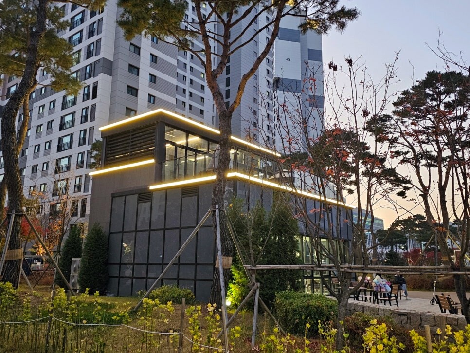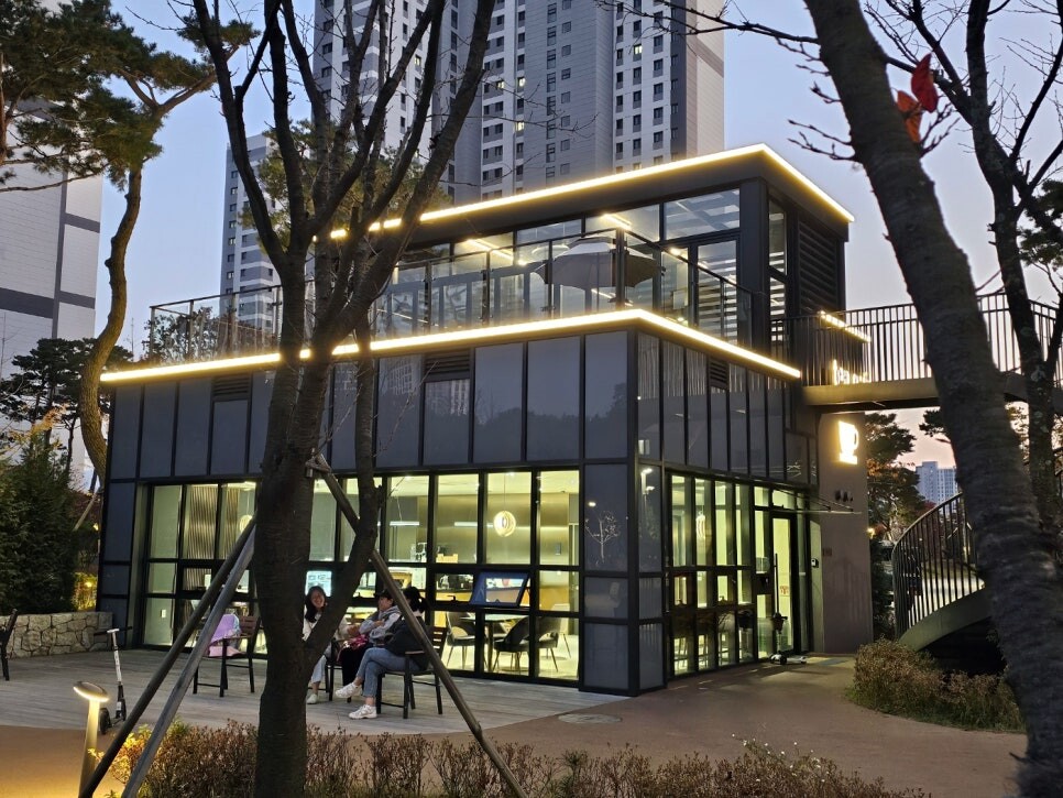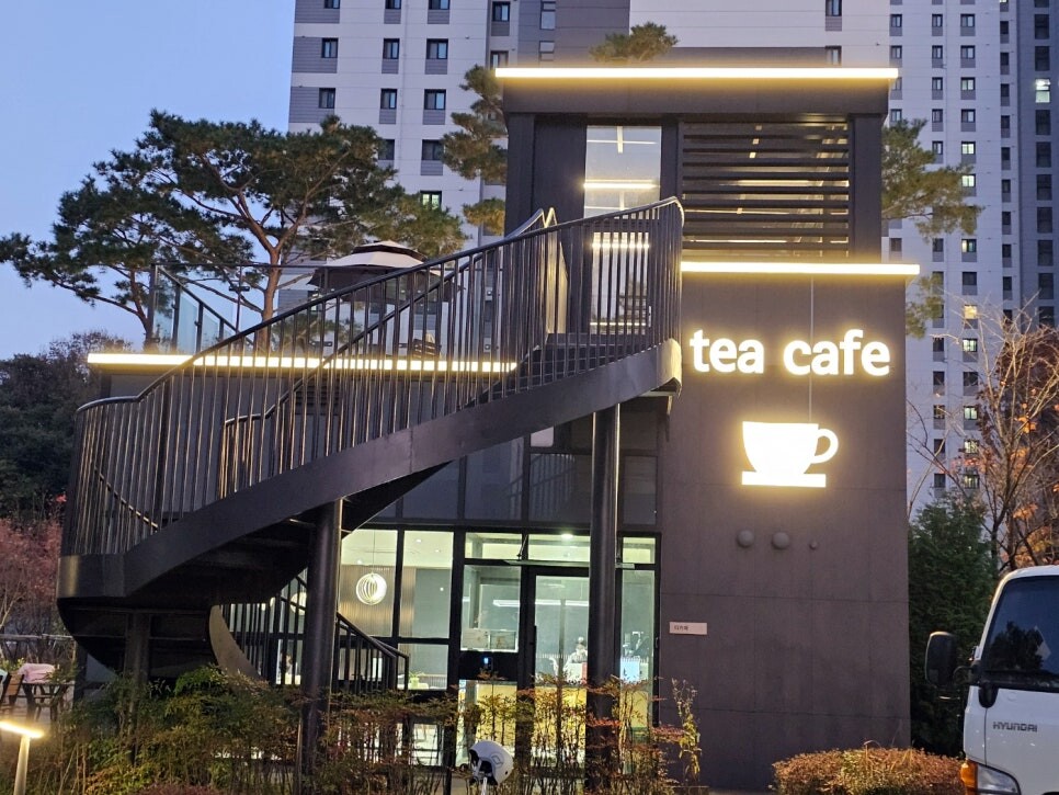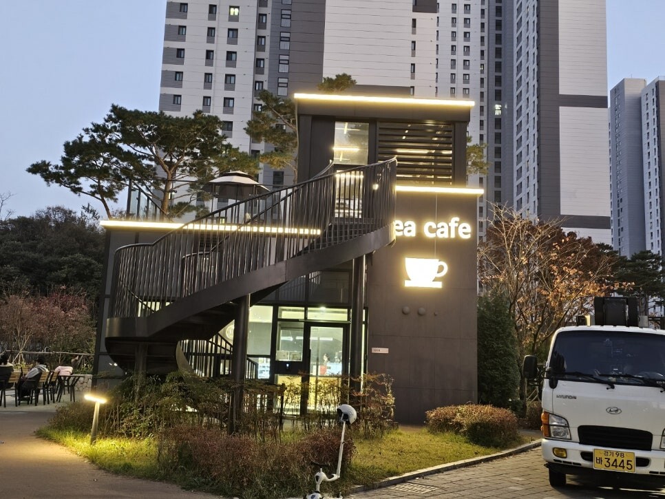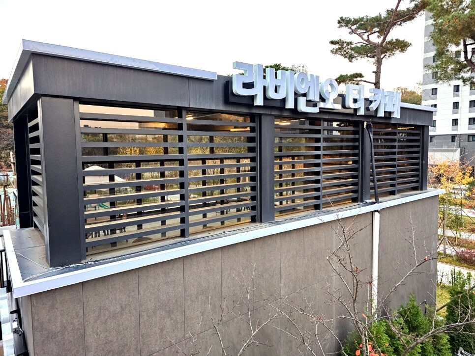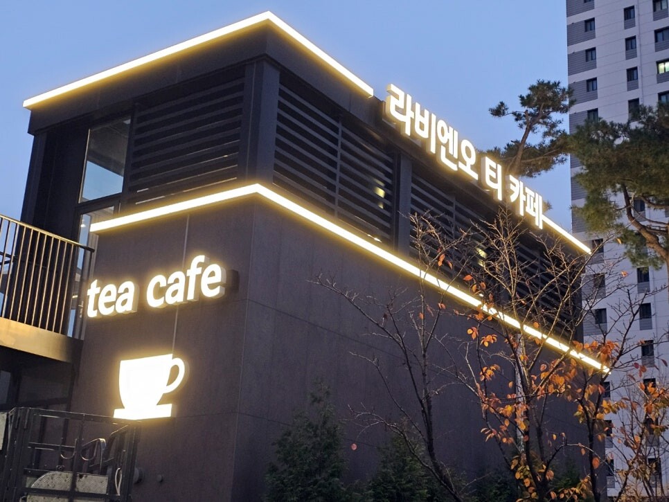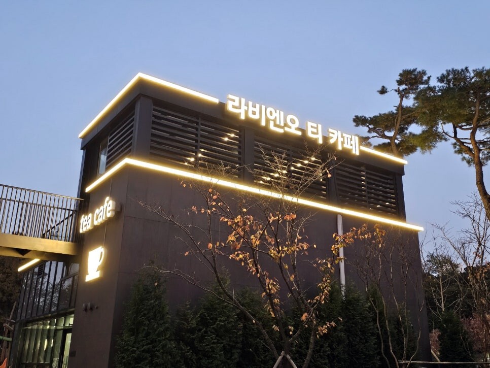 경기도 과천에서 의뢰가 들어온 아파트단지내 카페간판입니다. 라인조명을 많이 설치하고 싶다고 하셔서 건물을 사방 라인조명으로 둘러드렸습니다.