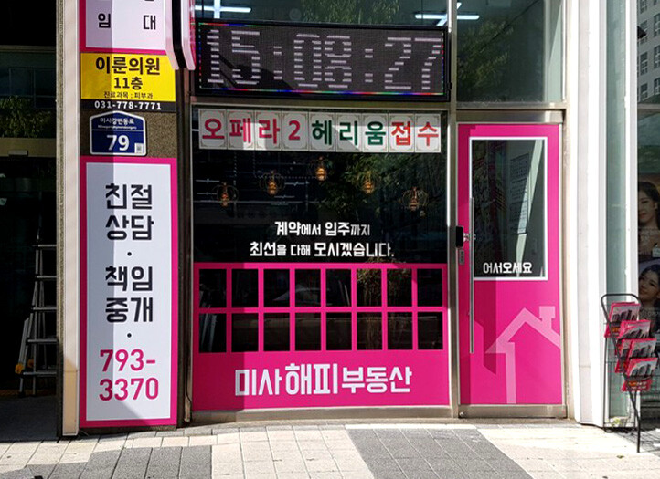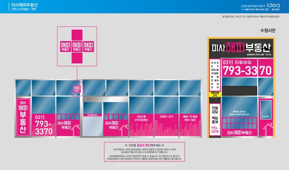 미사망월동에 위치한 부동산간판입니다. 실내썬팅과 외부간판시안입니다.