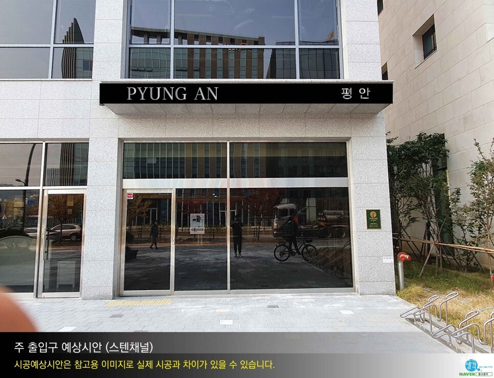 주출입구 입구쪽은 스텐잔넬방식에 갈바베이스판을 넣어서 시안을 잡아드렸습니다. |