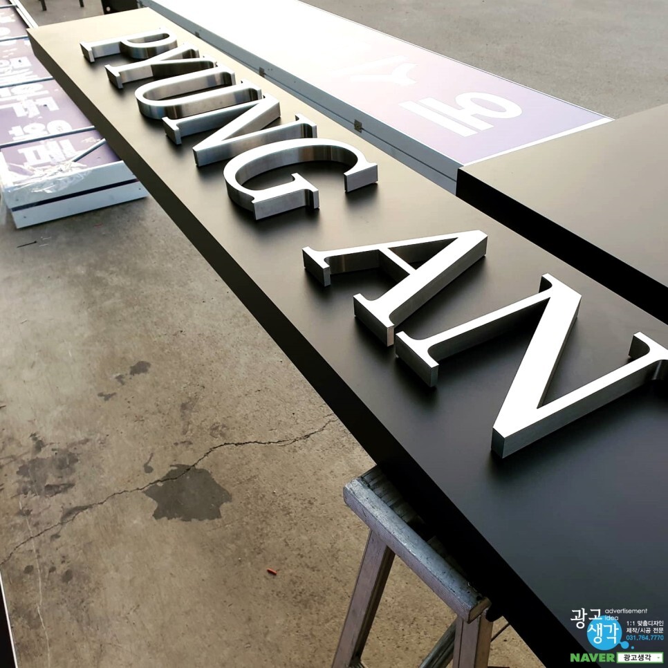 조립된 간판은 시안과 동일하게 잘 시공되었습니다. |