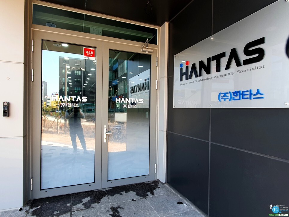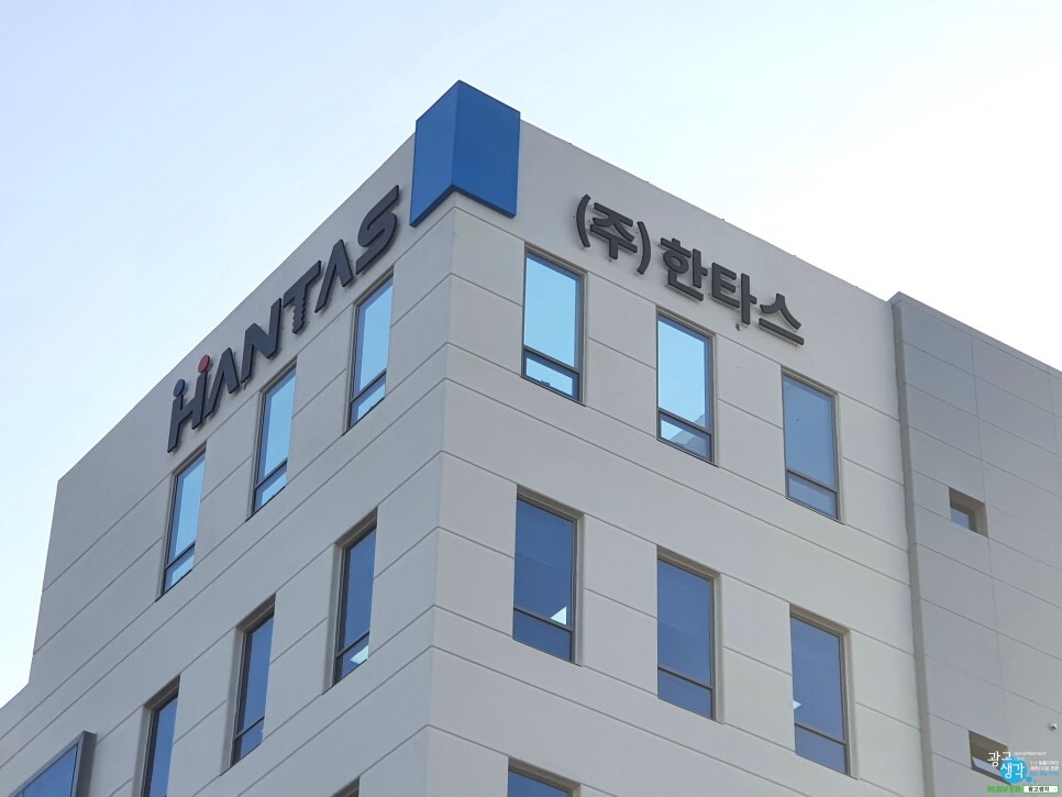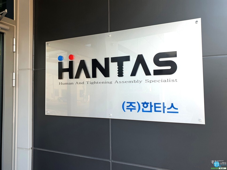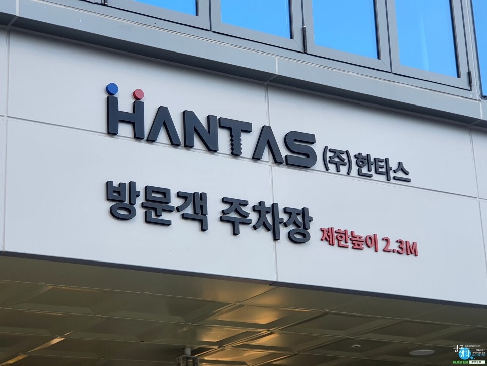 하남 초광산단로에 산업단지에 위치한 한타스 회사간판입니다. 갈바로 만든 후광간판입니다.