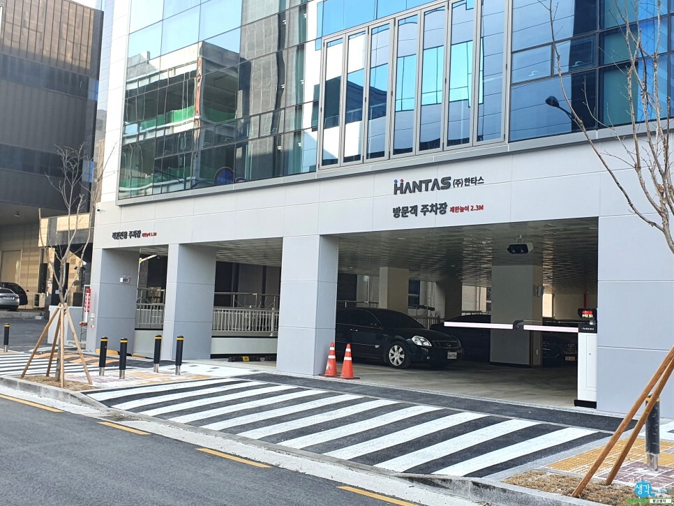 주차장쪽에는 방문객용과 직원용주차장에 따로 있어서 벽상단에 고무스카시로 안내글자 부착해 드렸습니다.