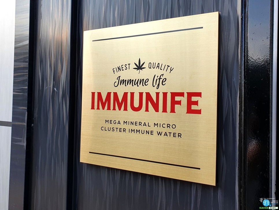 출입구쪽에는 골드티타늄부식현판과 엠보시트지로 간단하게 디자인했습니다.