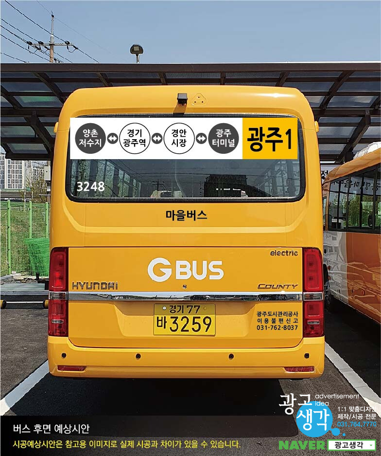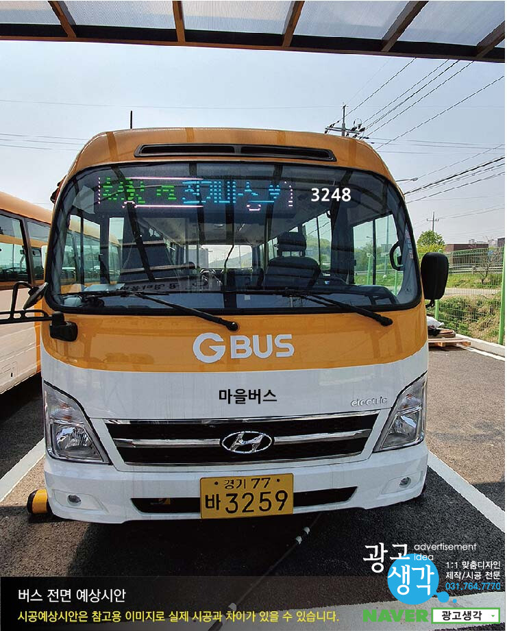 시안은 현장에 있는 버스를 사진 찍어서 사이즈를 잰 다음에 예상시안을 제공해 드렸습니다.