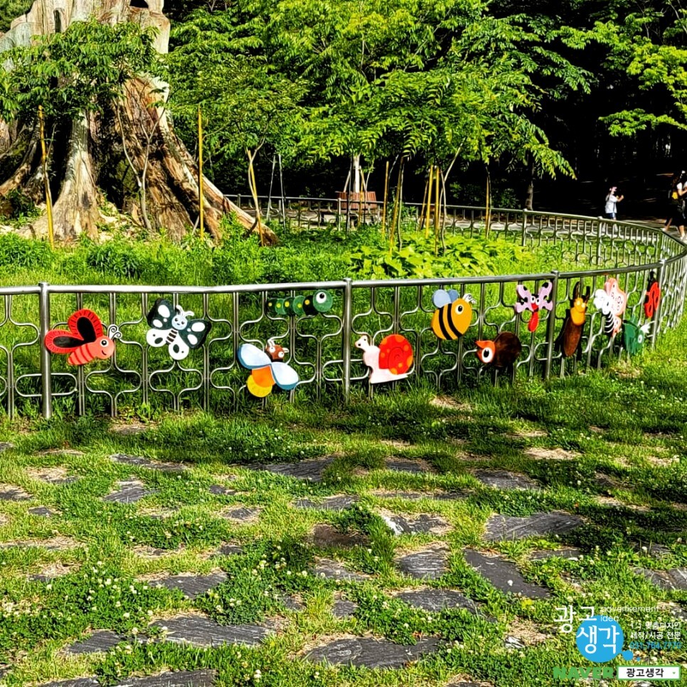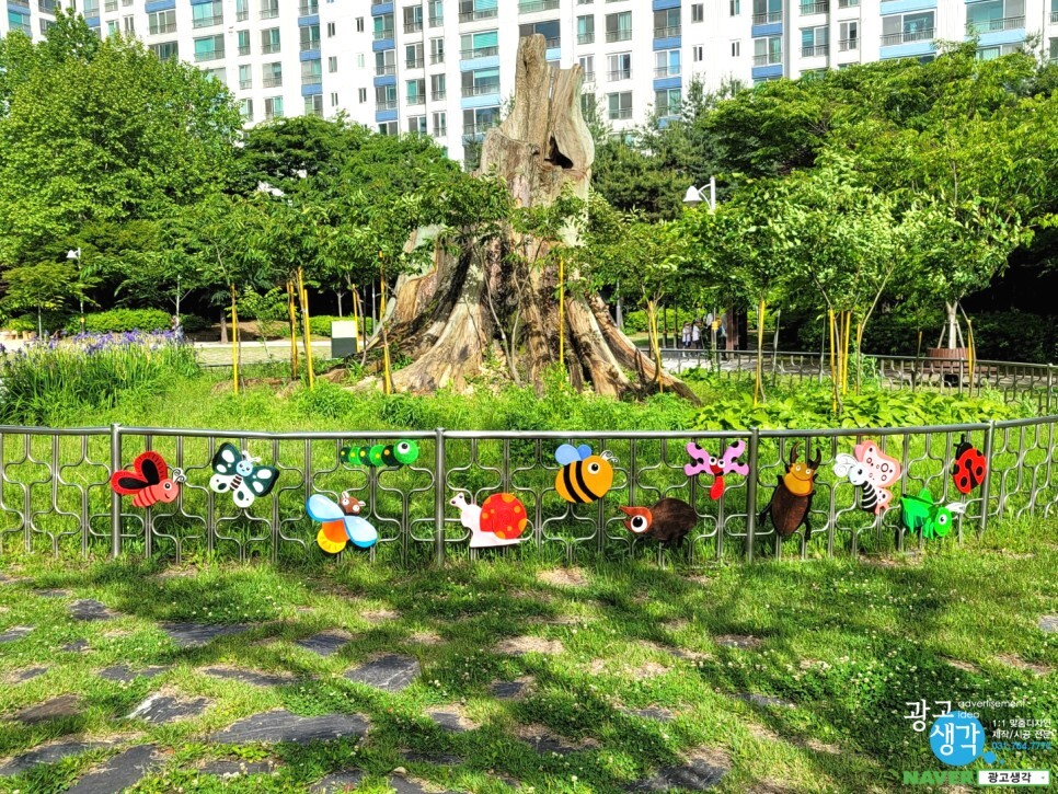 쓰러진 느티나무가 있는 자리엔 그 나무로 곤충모양을 만들어서 휀스에 부착해 드렸습니다.