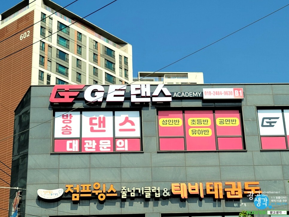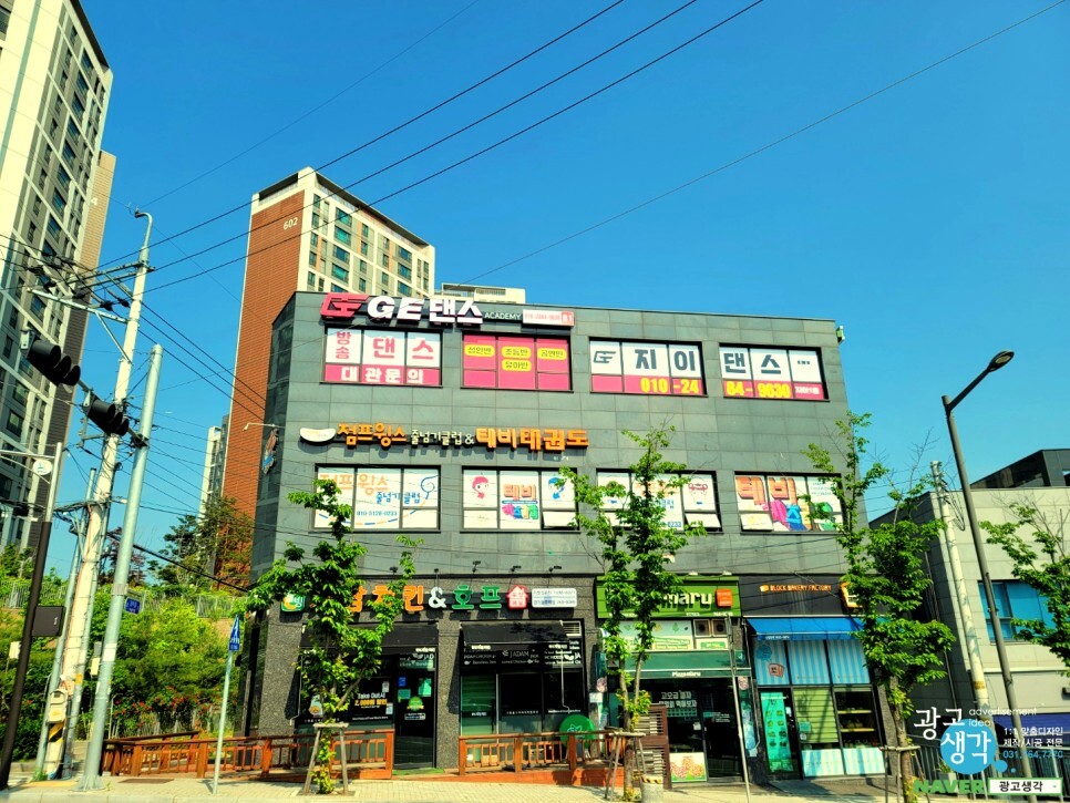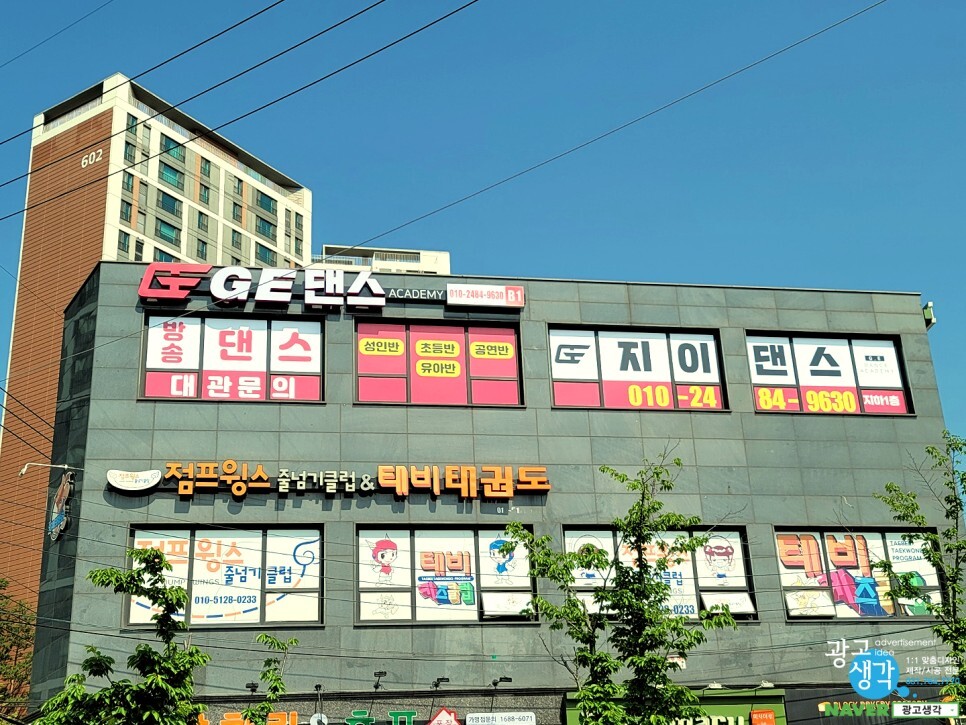 경기도광주 장지동에서 의뢰가 들어온 댄스학원간판과 썬팅입니다. 시안은 현장사진에 시공예상 이미지를 합성해서 제공해 드렸습니다.