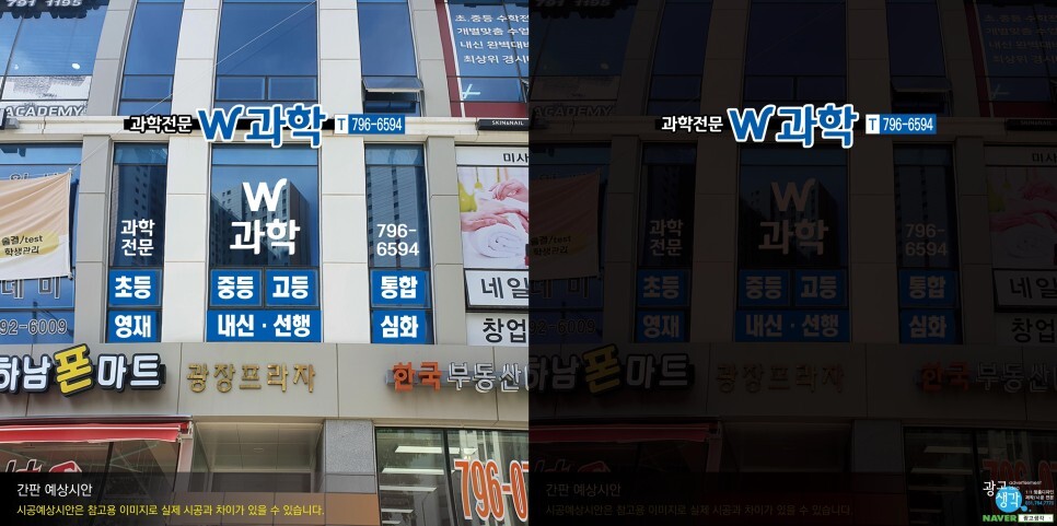 하남 광장프라자에서 문의가 온 과학학원간판입니다. 기본 led바 형식에 채널간판입니다.