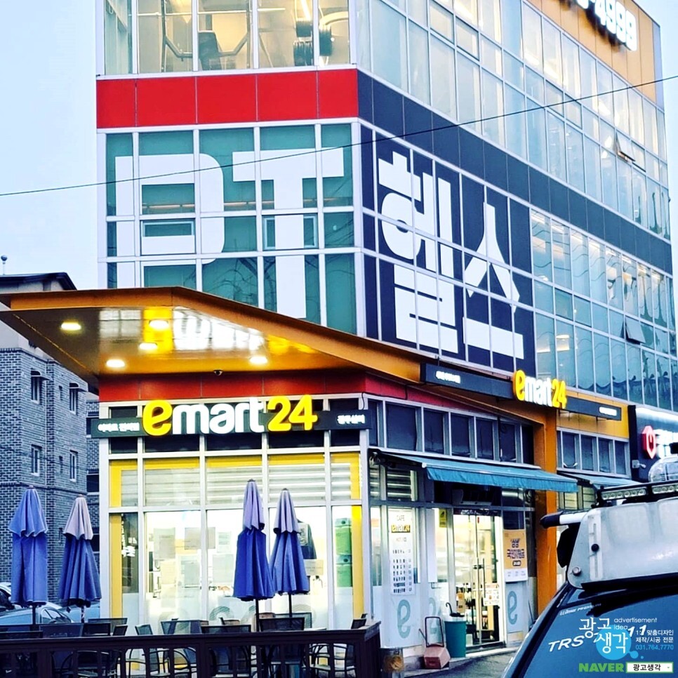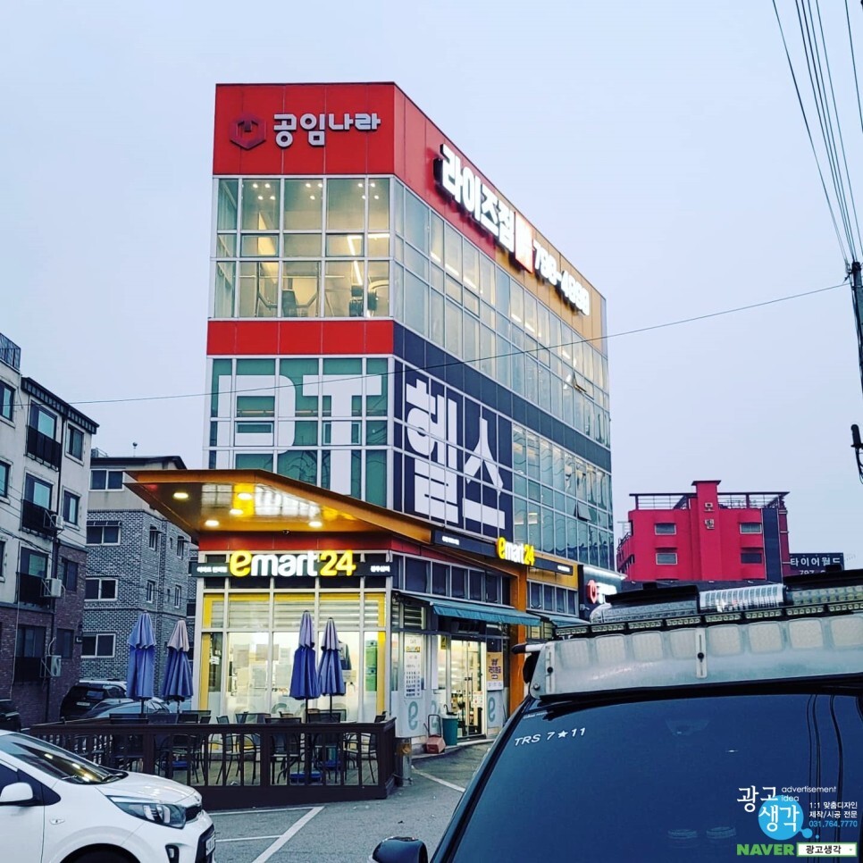 글자 두글자 크기가 230cm 정도 됩니다. 이정도 크기면 대로에서도 한눈에 잘 보이기 떄문에 여기에 헬스장이 있다는건 지나가는 차량 누구나 확인 가능합니다.