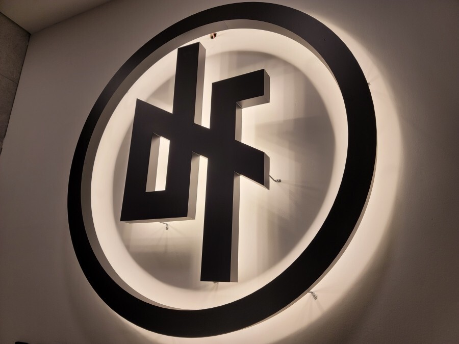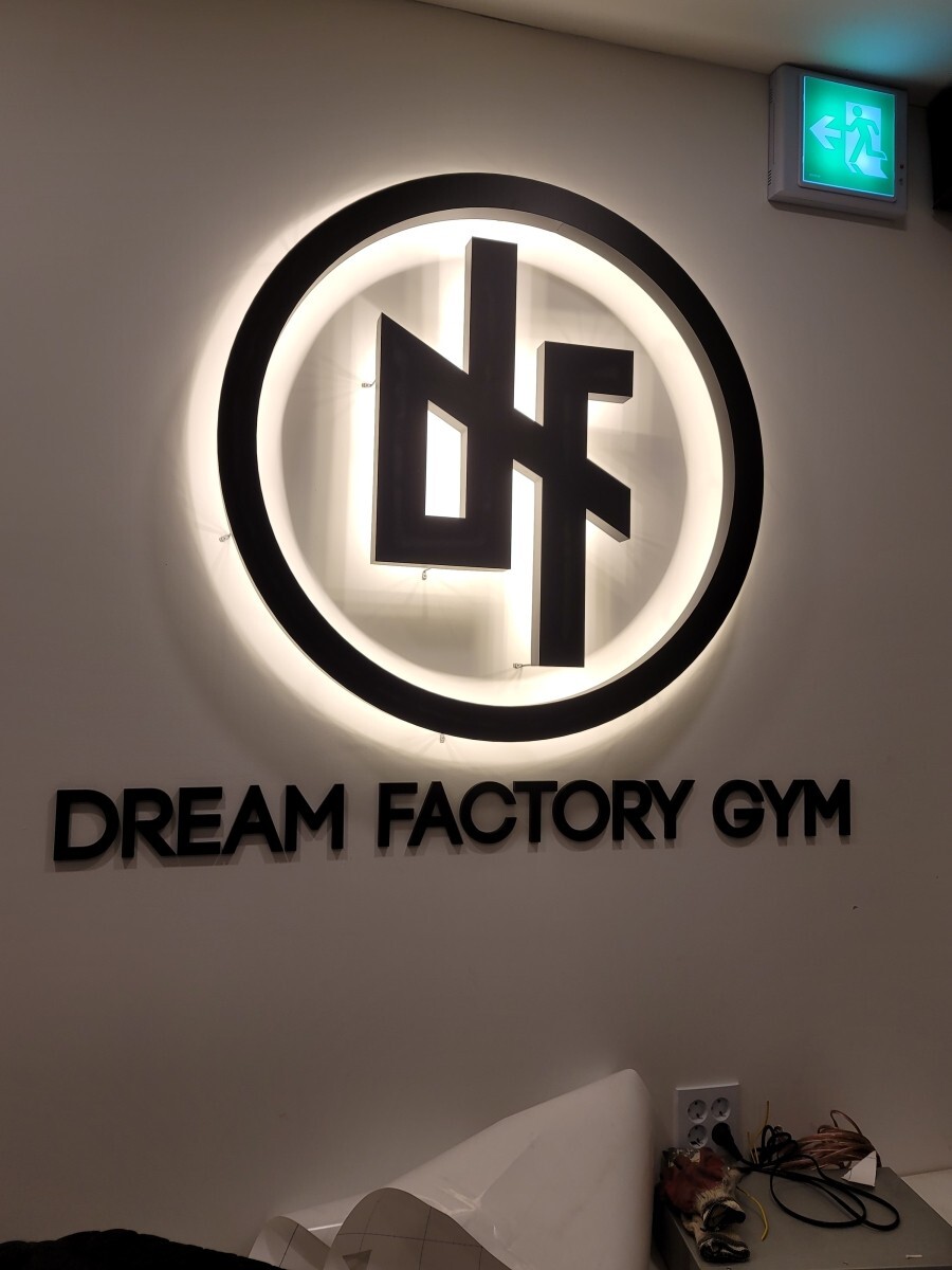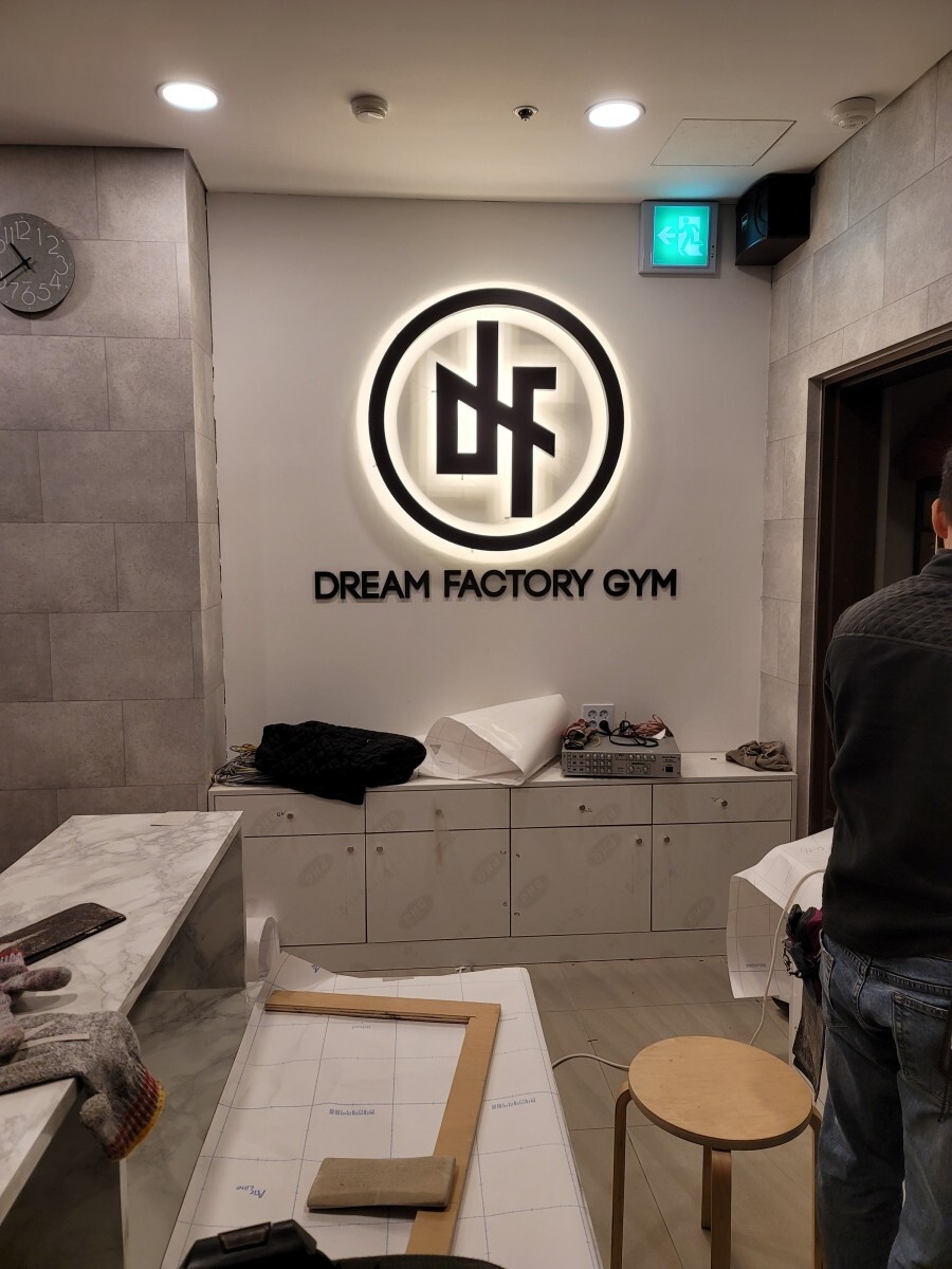 실내 갈바후광사인입니다. 갈바잔넬로 후광효과를 연출하고 하단에 아크릴스카시로 상호 부착해 드렸습니다. |
