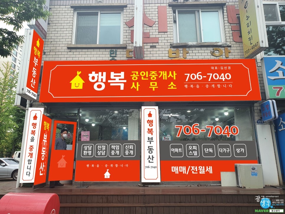 분당에서 문의가 온 부동산간판천갈이와 등갈이, 그리고 썬팅작업입니다. 기존간판사진입니다.