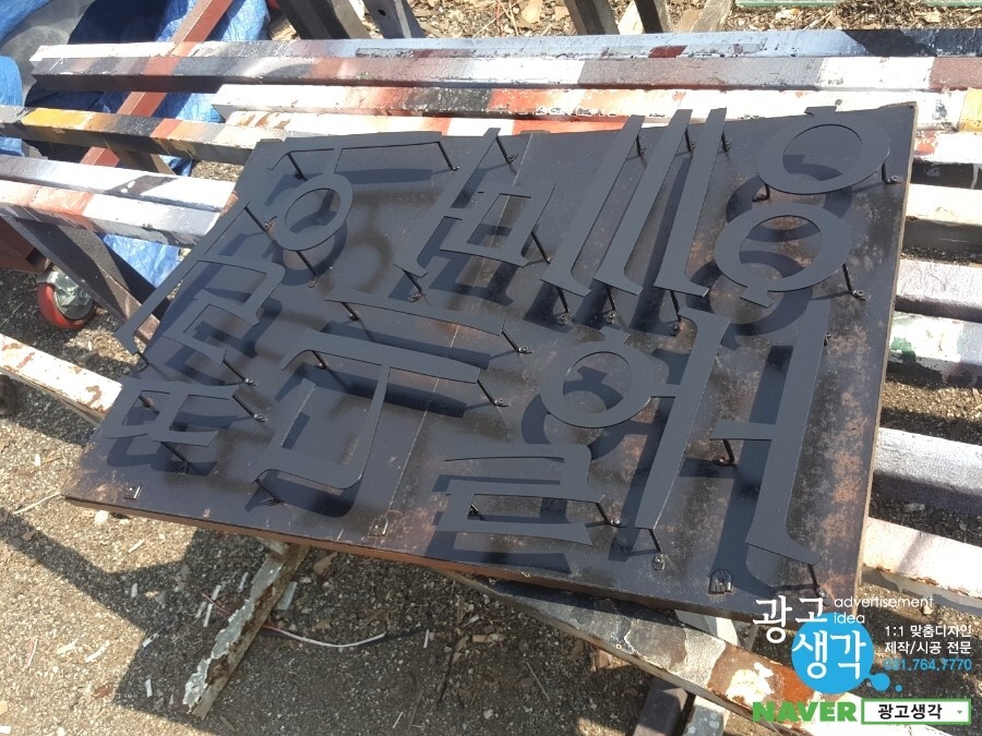 간판에 들어갈 컷팅된 글자에 까치발을 용접하고 도장작업을 했습니다.