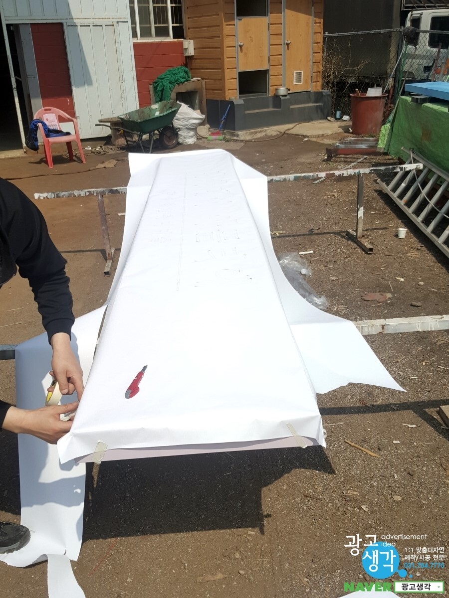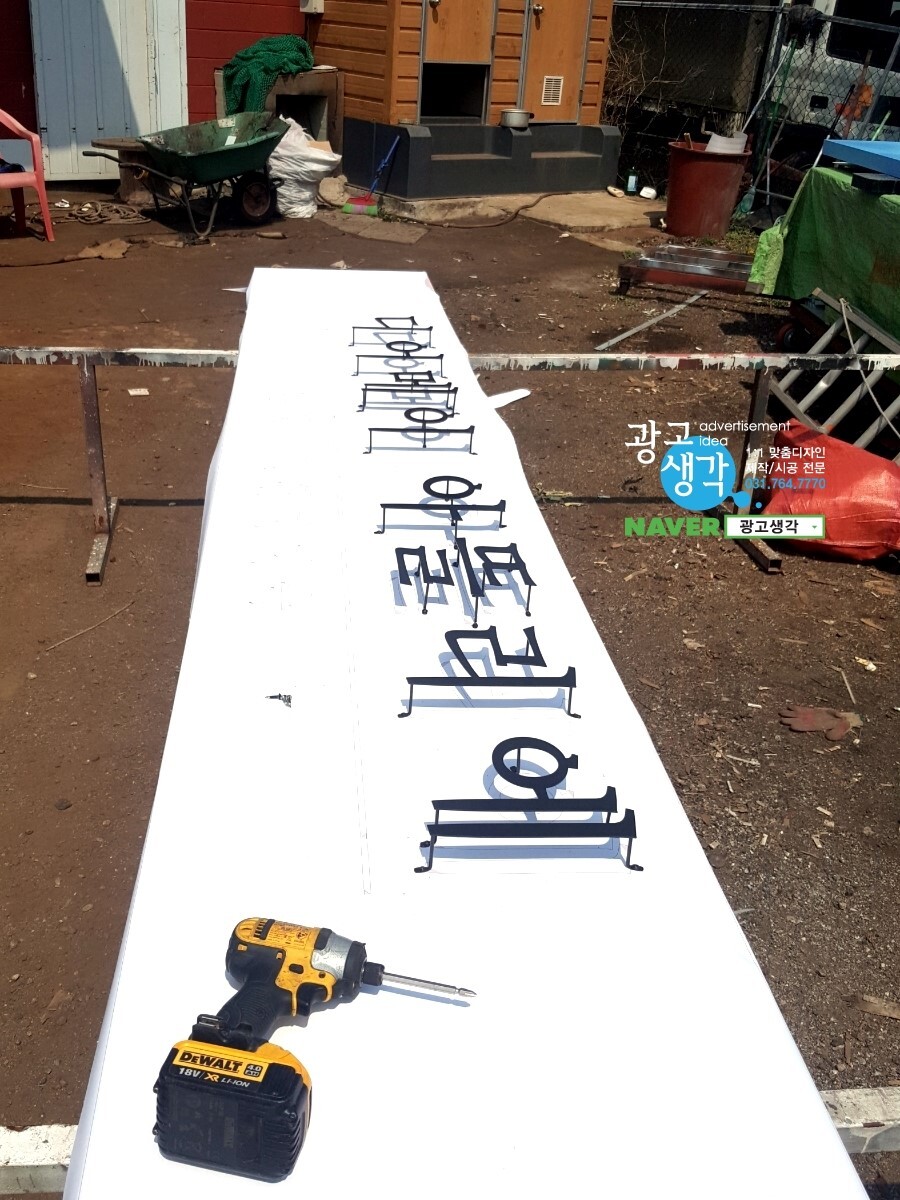 그리고 갈바간판에 종이도안을 붙이고 간판조립을 시작합니다.