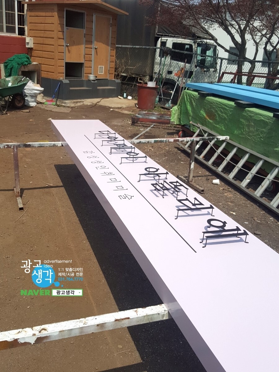 큰글자는 갈바레이져컷팅으로 까치발로 세우고 작은 글자는 시트지로 부착했습니다.