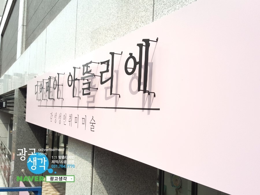 현장에서 시공이 완료된 간판사진입니다. 시공과정은 직접 시공하여 찍지는 못했습니다. 이쁘네요 ㅋ