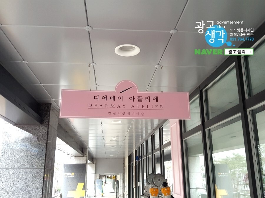 천장에 와이어로 포맥스간판도 달아드렸습니다.