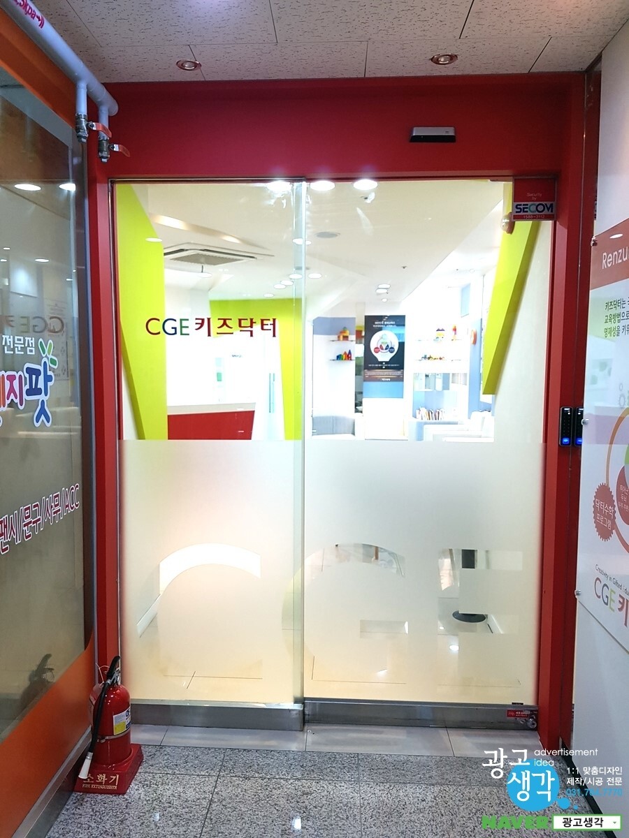 유리문에는 엠보썬팅과 학원상호는 아크릴도 부착해 드렸습니다.
