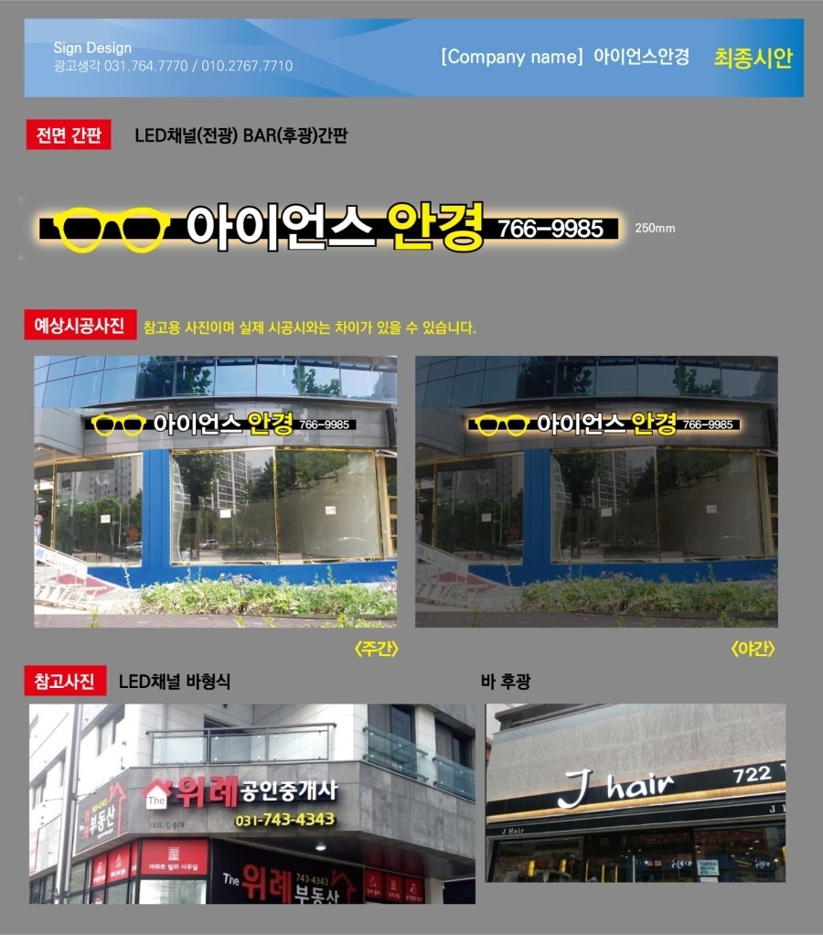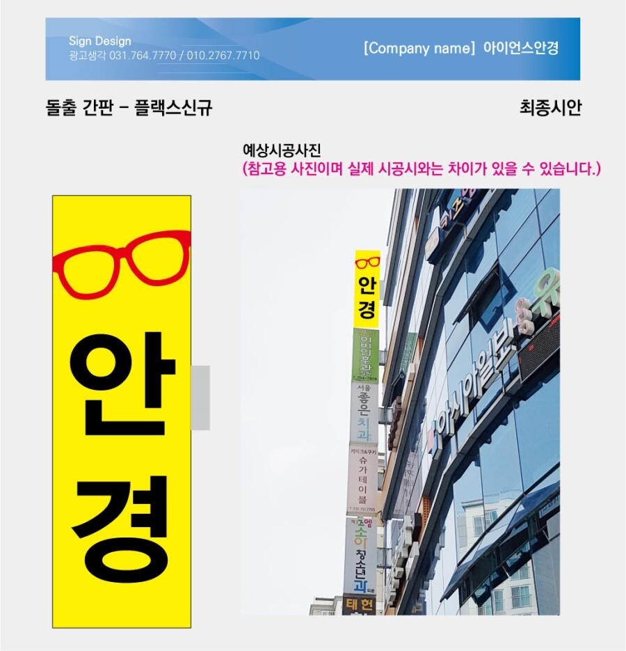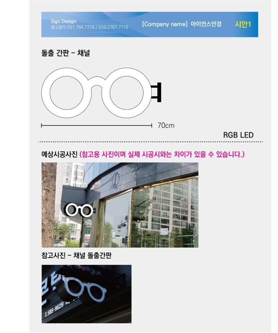 간단한 시안이지만 안경점간판으로 잘 표현이 된것 같습니다. 비용도 많이 절감해 드렸습니다.