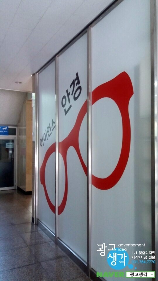 점포내에 가림막으로 막아달라고 해서 안경모양을 넣은 시트지썬팅을 해드렸습니다.