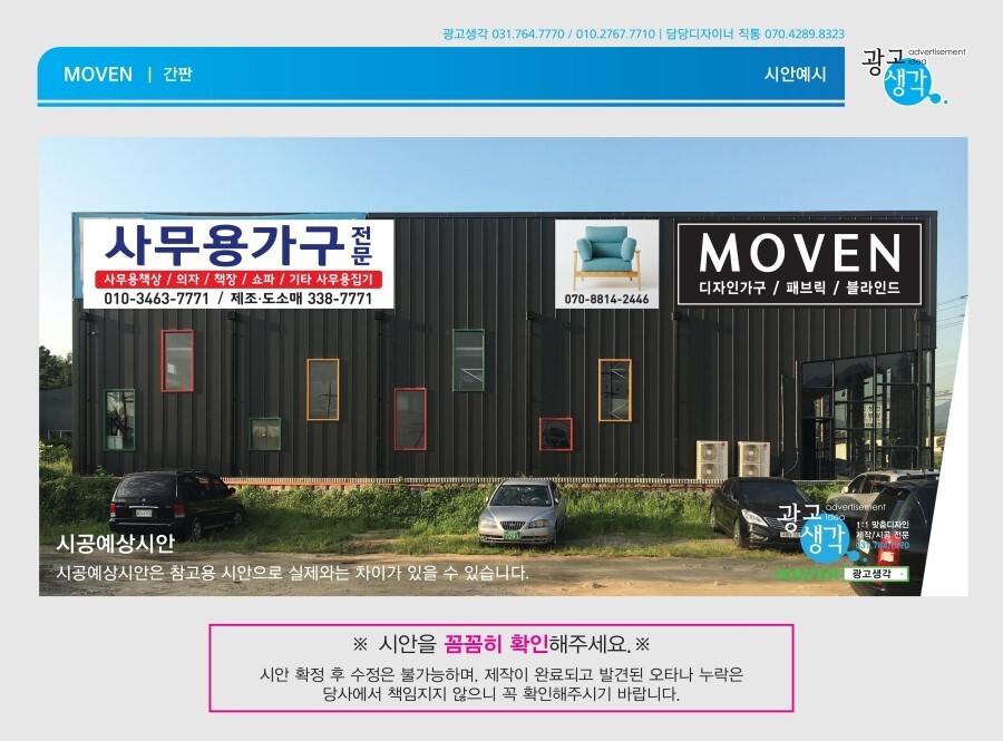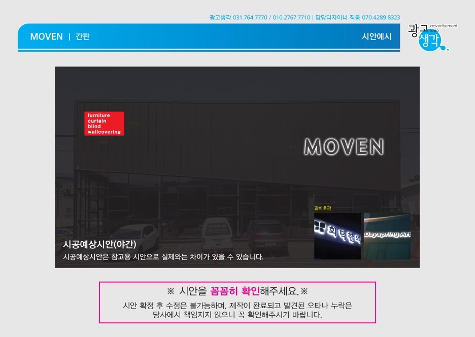 간판제작과 시공은 광고생각에 맡겨주시면 좀더 저렴한 가격으로 졍직하게 열심히 하겠습니다.