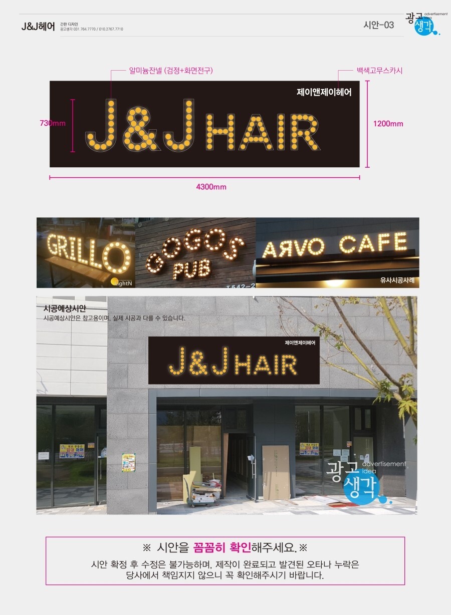 미용실간판을 비롯한 간판에 대한 상담문의는 광고생각 연락주시면 좀더 합리적은 비용으로 간판 제작설치해 드립니다.