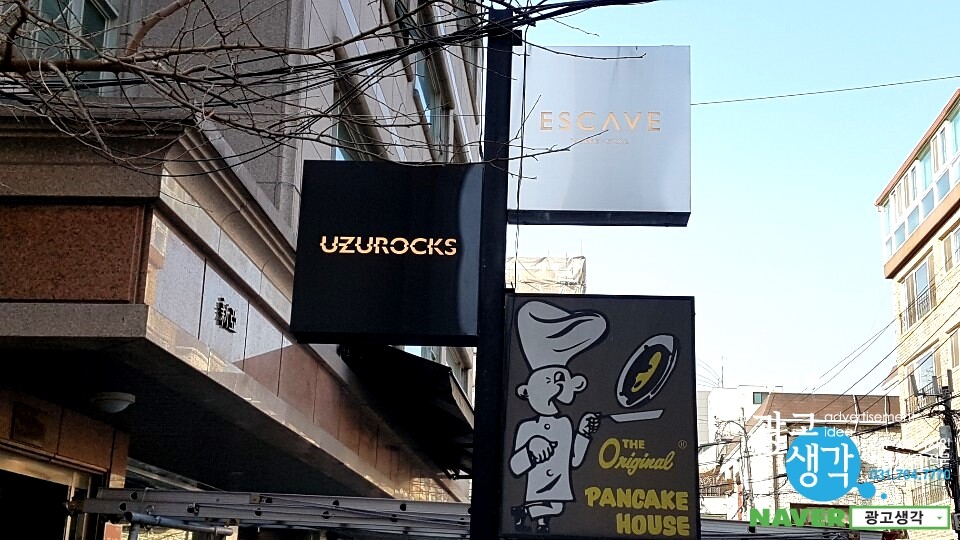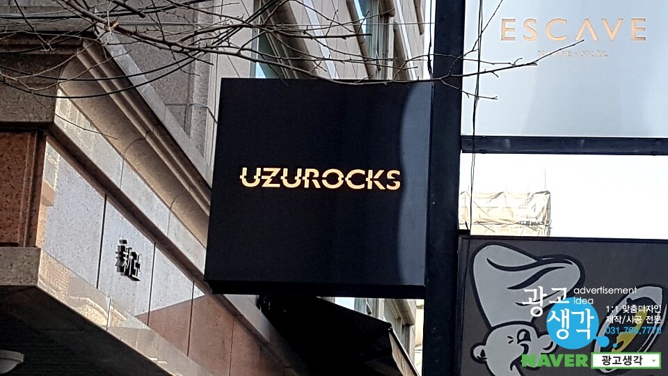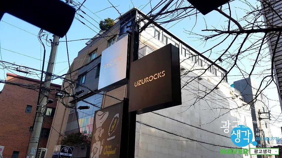 안녕하세요 광고생각입니다. 신사동에 설치한 블랙스텐을 활용한 돌출간판입니다.