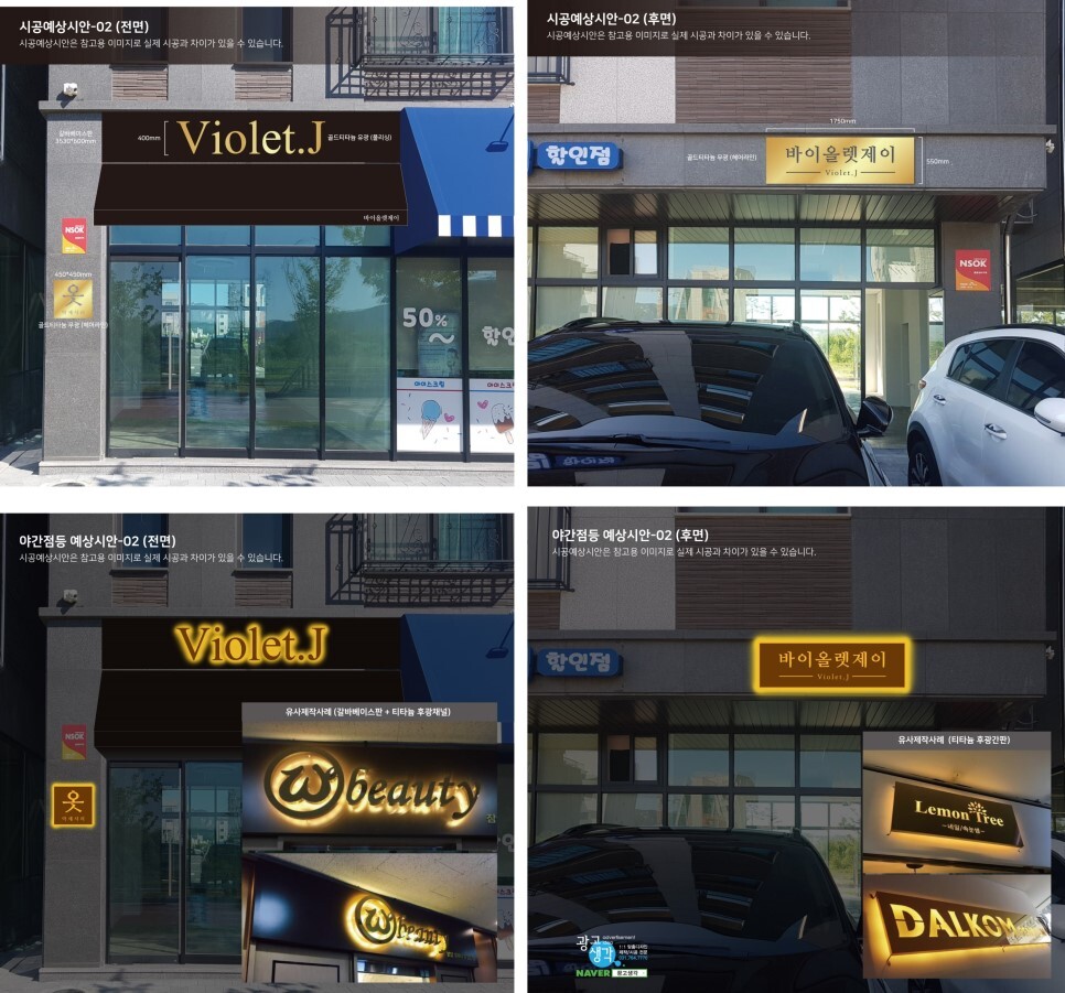 그외 다른 티타늄레이져컷팅이 들어간 간판들 조도테스트 사진입니다.