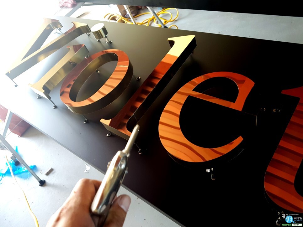 작은 입간판도 해드렸습니다. 이렇게 사물이 반짝반짝 비춰지는게 폴리싱방식입니다.