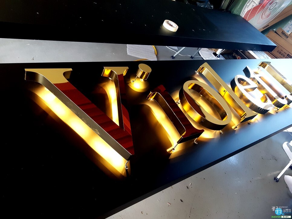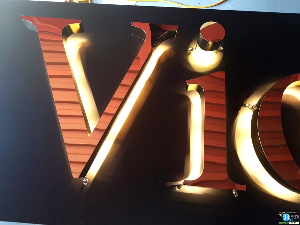 잘 나오네요. 앞에 레이져컷팅으로 글자모양을 따서 글자부분에 불이 들어온거 처럼 보여요
