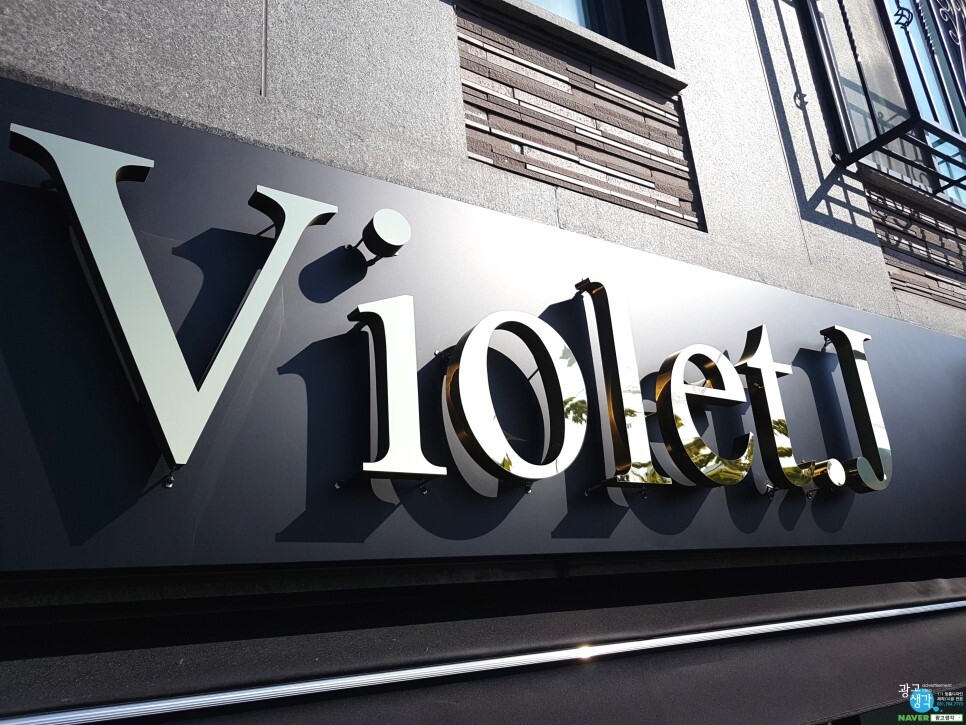 글자부분은 폴리싱 방식이고 레이져로 가공한 간판들은 헤어라인 방식입니다.