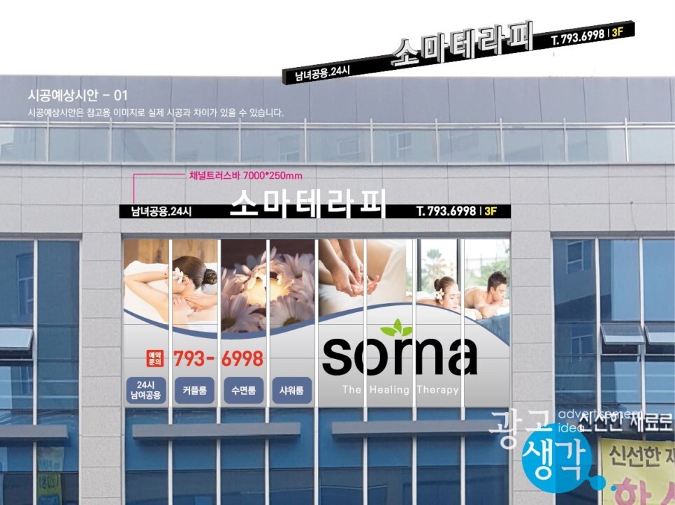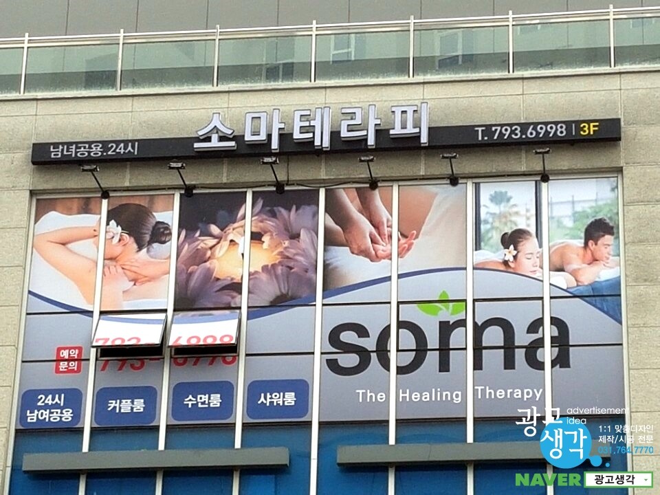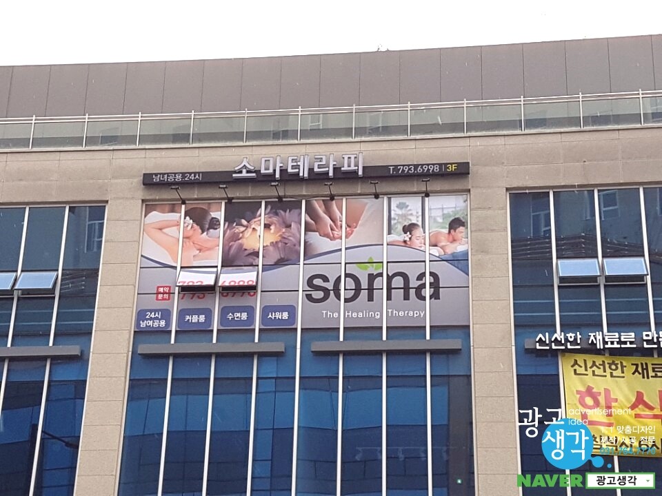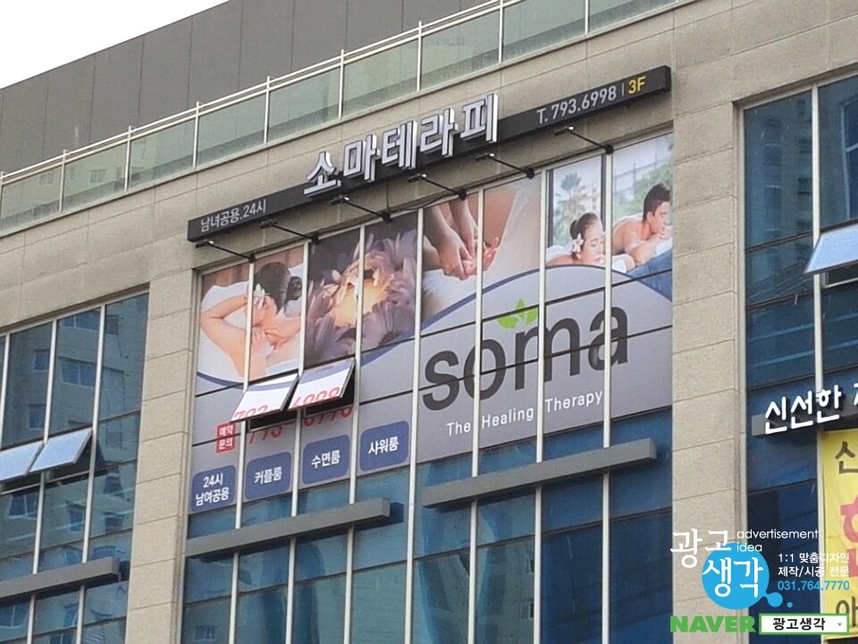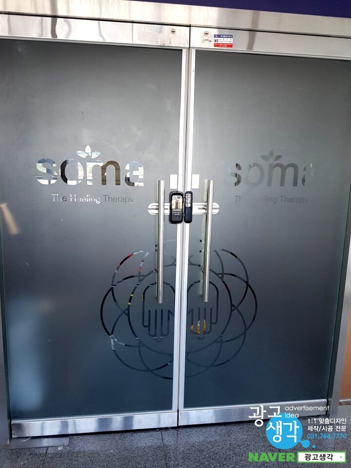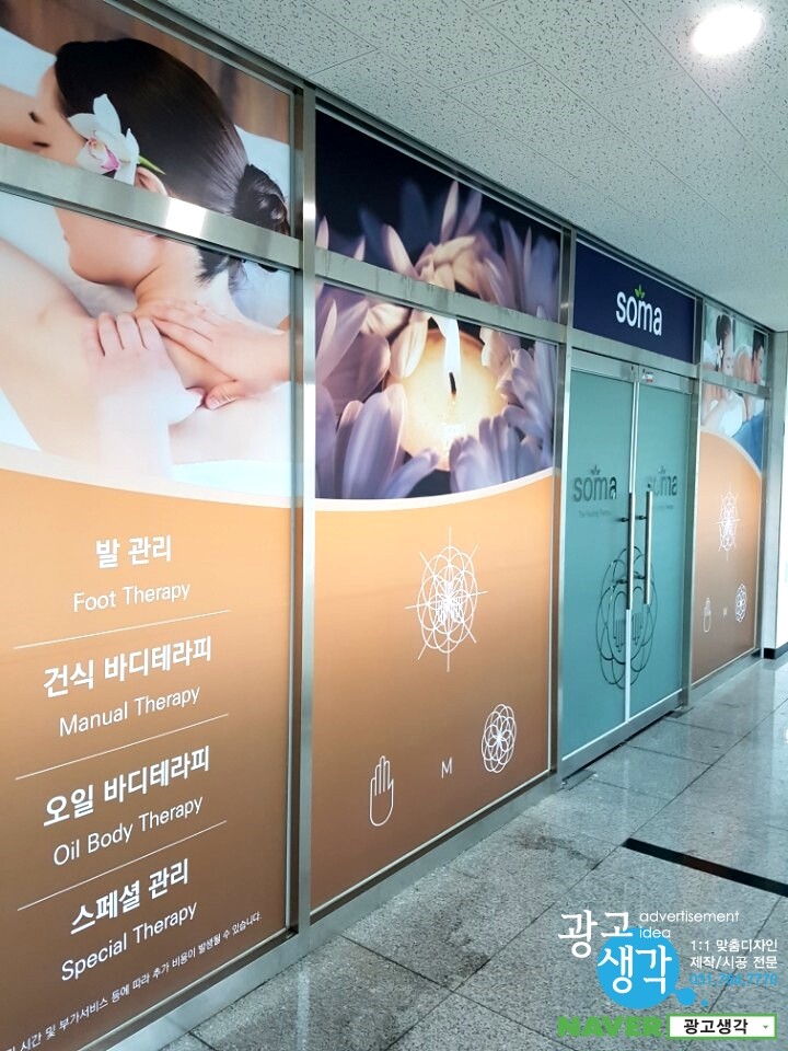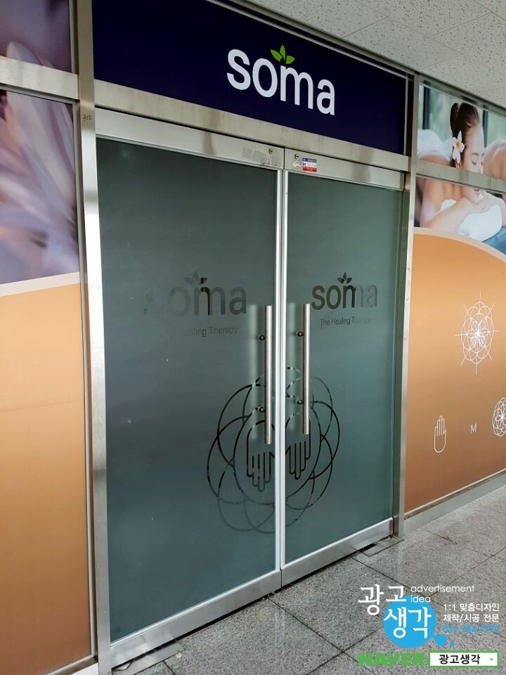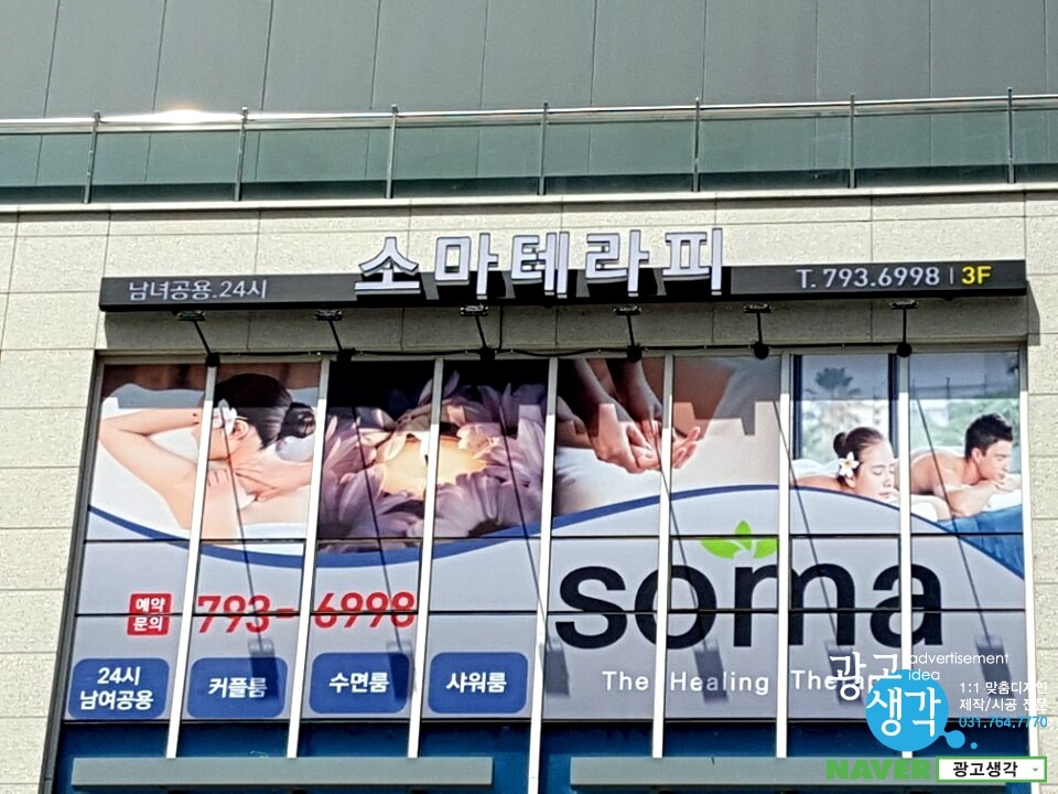 하남에서 주문이 들어온 소마테라피 간판과 유리창썬팅입니다.
