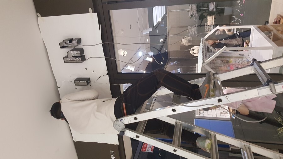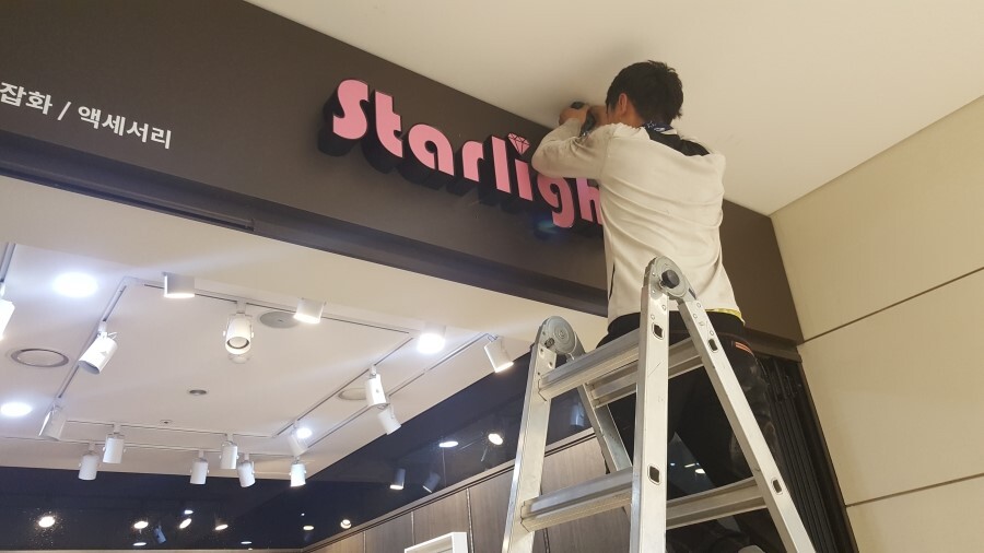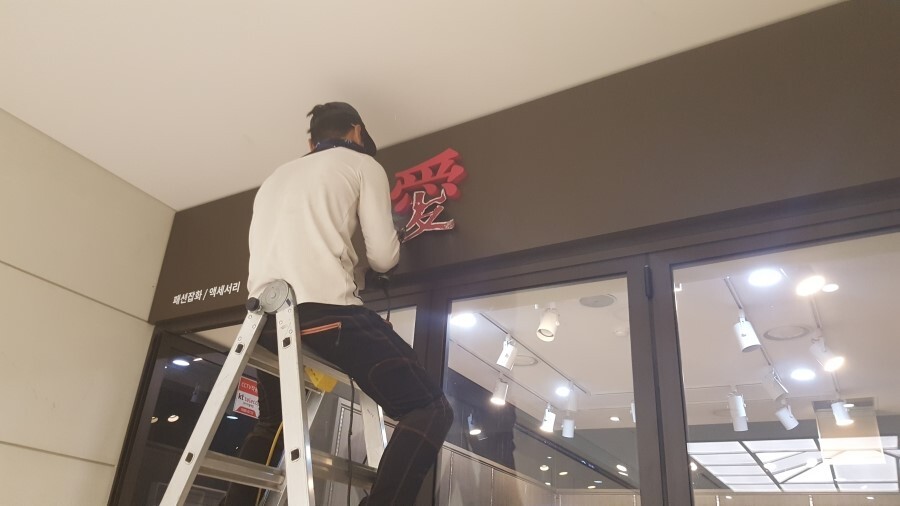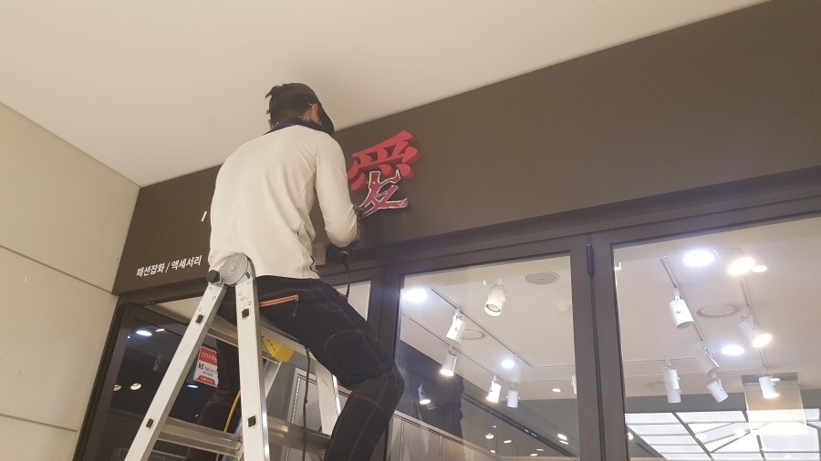 종이현도를 붙이고 새로운 간판부착위치에 잔넬을 부착합니다.