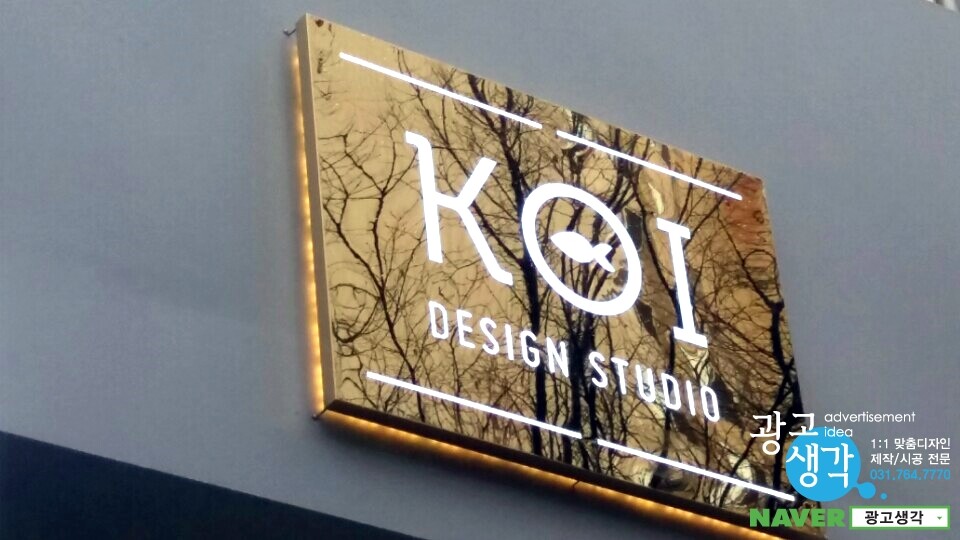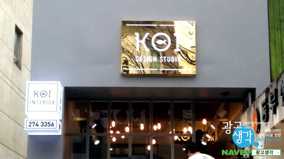 용인시에 위치한 인테리어가게에서 주문이 들어온 골드스텐간판입니다. 일반적으로 간판에서는 티타늄간판이라 칭하지만
